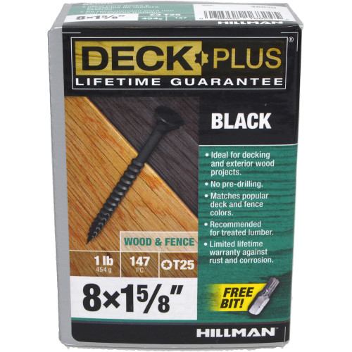 4 layers of black epoxy coating provides superior rust and corrosion protection; Flat head style sits flush with material; Limited lifetime warranty against rust & corrosion; Recommended for use with cedar or ACQ, CA, and CCA treated lumber; Star drive style designed to reduce slippage and camout when tightening the screw; T25 star bit included in package to match screws and take the guesswork out of installation; Together, coarse screw threads and a self-drilling point design eliminate the need for a pilot hole