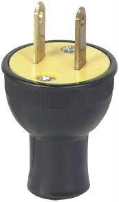 125 volts; 2 pole; 2 wire; Black; Brass prongs; Non-grounding; Residential grade; Straight blade plug; UL498 aprroved; Vinyl body material