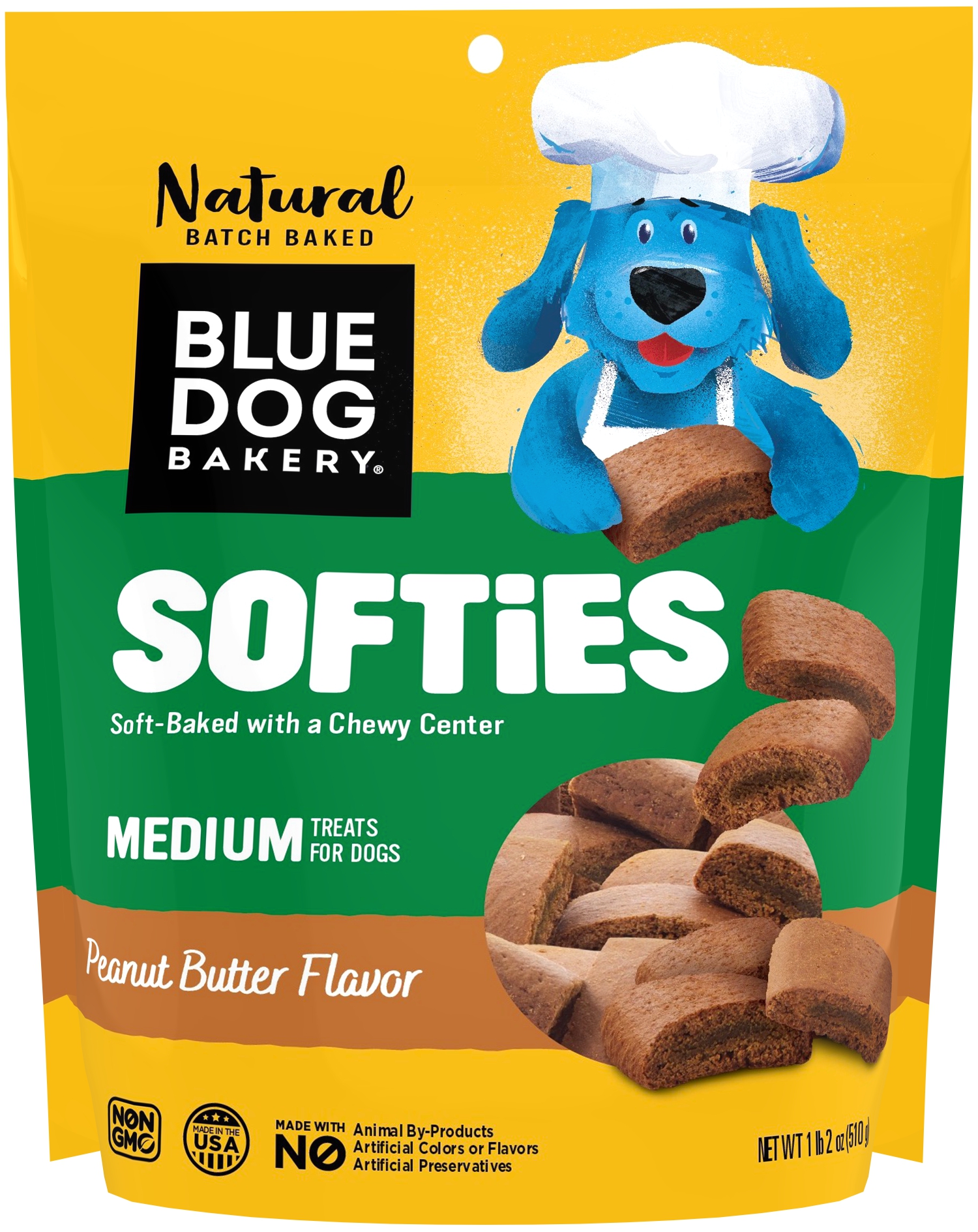 For a snack that’s as soft as it is scrumptious, treat your pal to Blue Dog Bakery Softies Peanut Butter Dog Treats. These yummy treats are a great choice for puppies and older dogs who need a softer snack to chew on. These moist, easily-chewed morsels are made with peanut butter, whole wheat, and non-fat milk a low-fat treat that’s also easy for your pup to digest. And as a plus, they also crafted with flaxseed and vitamin-rich eggs, helping to keep your pooch’s skin healthy and coat shiny. Made in the USA without any artificial ingredients, fillers or animal by-products, it’s a feel-good, taste-good treat your pup will love.Specifications