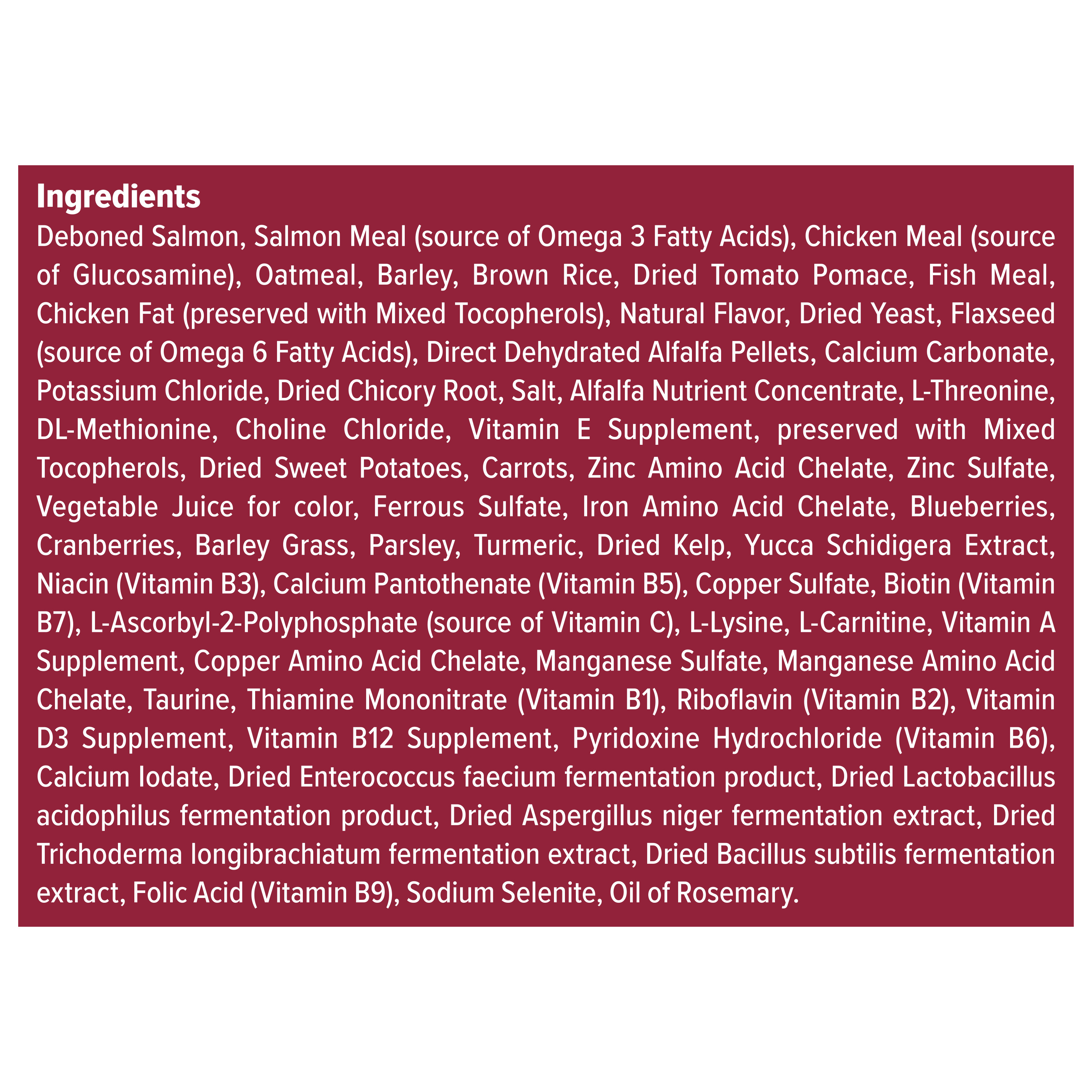 PACKED WITH REAL SALMON: A recipe made to satisfy your dog’s natural love for meat, this high protein dog food features real salmon to help build and maintain lean muscle mass. HEALTHY INGREDIENTS: BLUE Wilderness grain free dog food, made with healthy carbohydrates including sweet potatoes and peas, helps fuel your adult dog’s active lifestyle; It also contains omega 3 & 6 fatty acids to support skin and coat health. ANTIOXIDANT-RICH LIFESOURCE BITS: A precise blend of antioxidants, vitamins and minerals carefully selected by holistic veterinarians and animal nutritionists to support immune system health, life stage needs and a healthy oxidative balance. A NATURAL DOG FOOD: BLUE dry dog food is made with the finest natural ingredients enhanced with vitamins and minerals; BLUE contains NO chicken (or poultry) by-product meals, corn, wheat, soy, artificial flavors or preservatives.Specifications