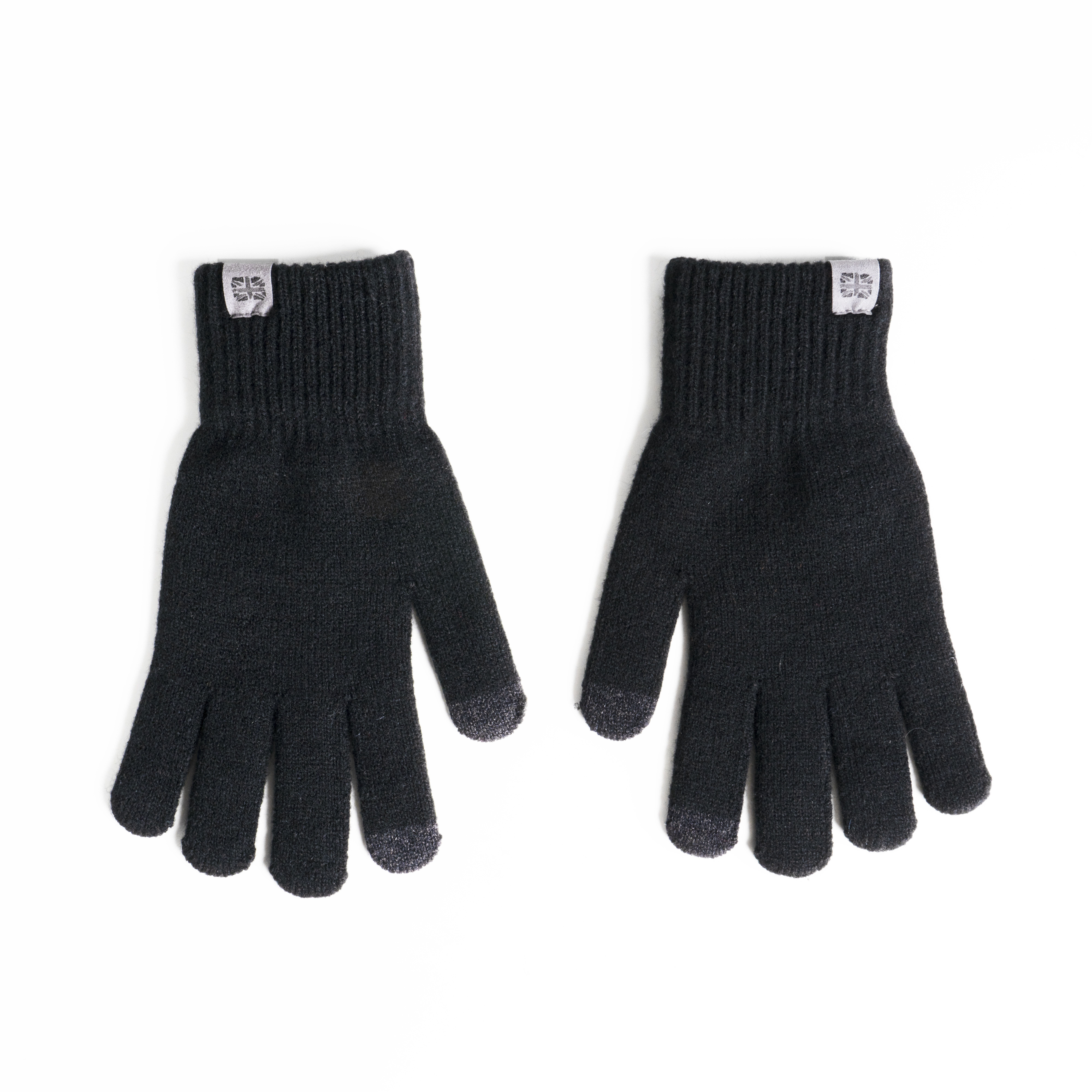COMFORTABLE; ONE SIZE FITS MOST; RIBBED CUFF; TECH-FRIENDLY FINGERTIPS; VEGAN SUEDE PATCH