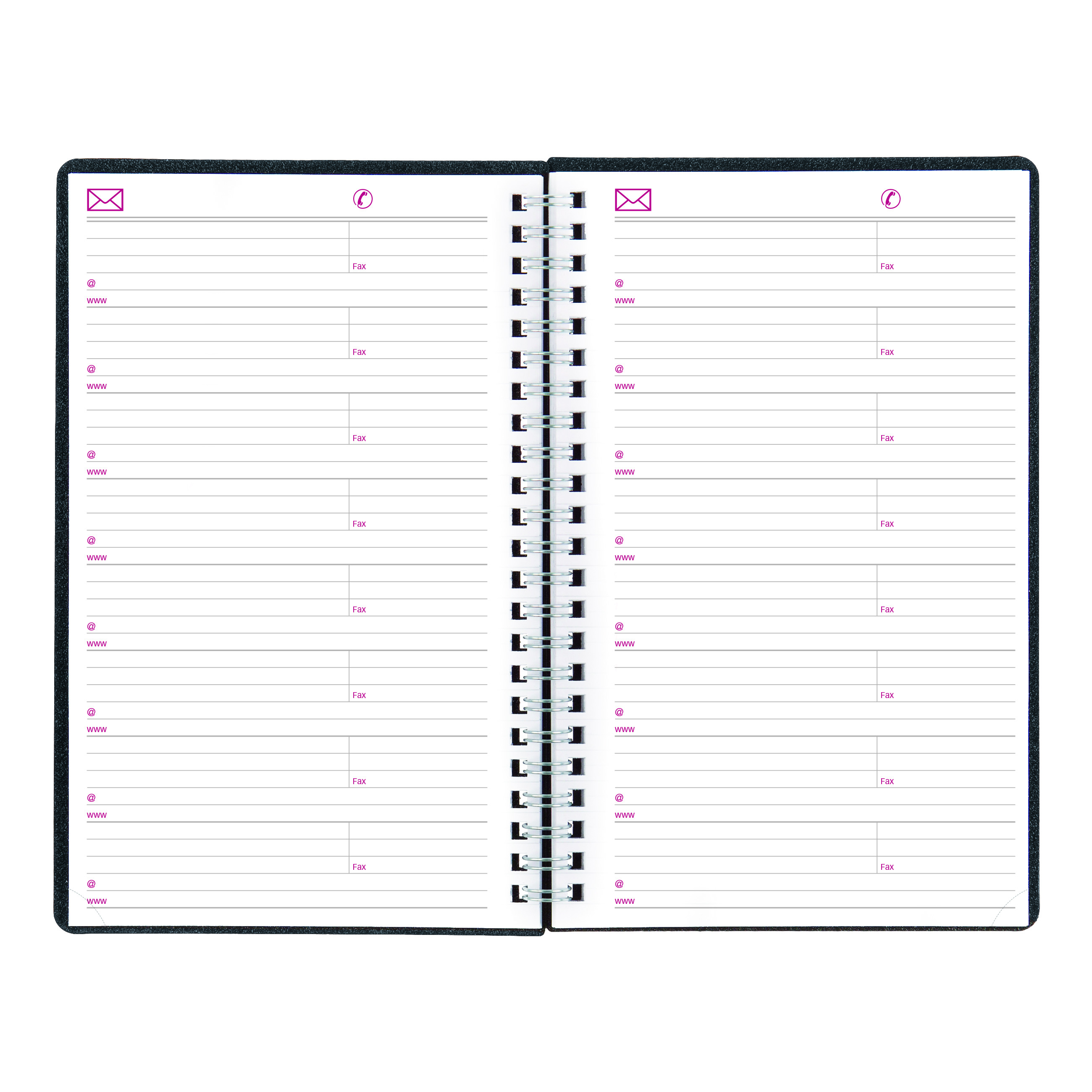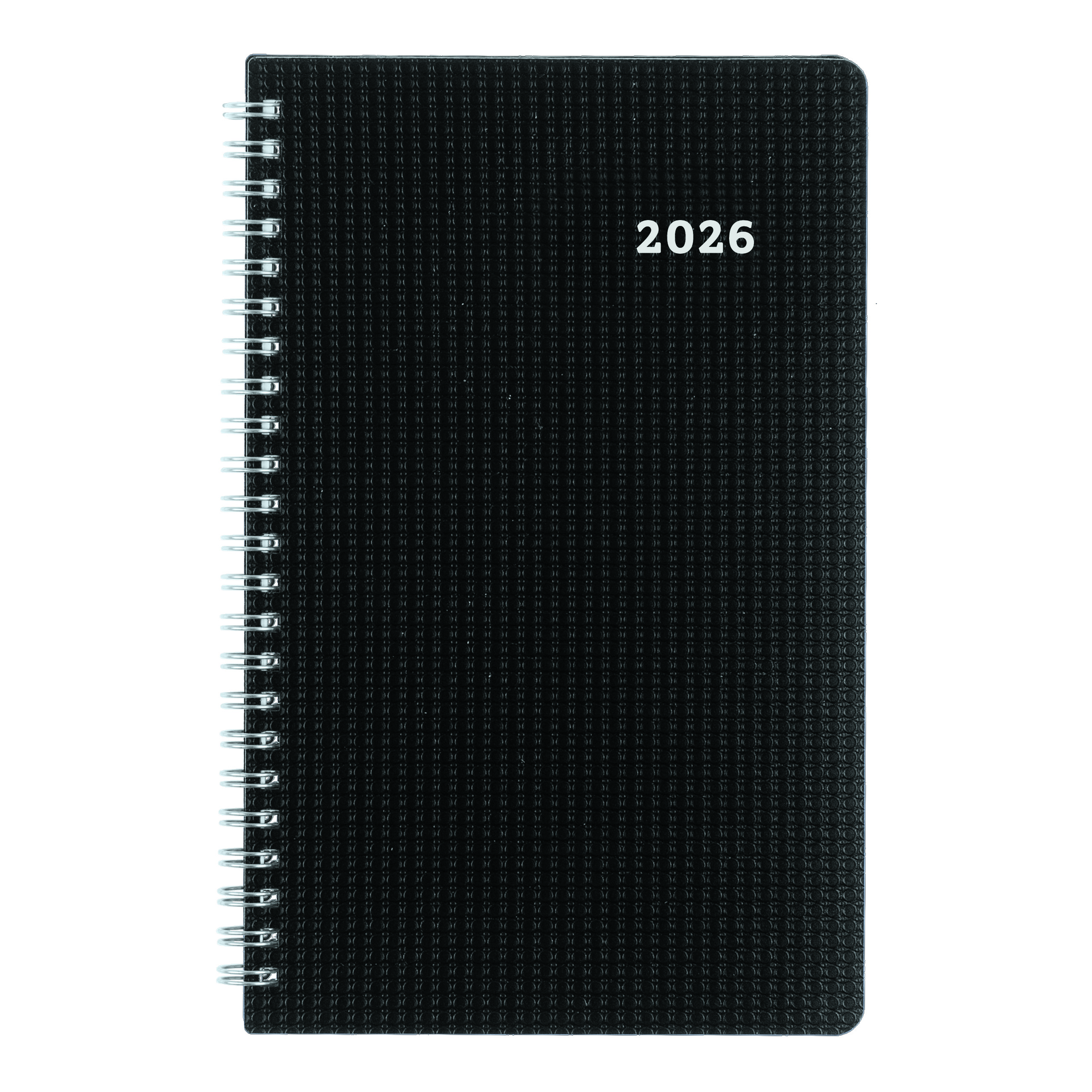 The Brownline DuraFlex Weekly Planner and Appointment Book features 12 months of planning, spanning January to December 2026, with one week per two-page spread in an appointment schedule format. Weekday hourly appointment schedule from 7:00 a.m. to 6:00 p.m. and ruled spaces for Saturday and Sunday. Contains reference calendars of past, current and future months on each spread. Daily countdown of days passed and days to come, highlights holidays and phases of the moon. Tear-off corners to help keep place. Contacts section for telephone, address, and email information. The textured poly cover is constructed with flexible twin-wire binding for a flat and sturdy writing surface. English, size: 8" x 5". Eco-conscious planner crafted from 100% post-consumer recycled paper. Certified under FSC license code: FSC C102682. The Forest Stewardship Council enables businesses and consumers to choose products made with materials sourced from responsible forestry, promoting environmentally appropriate, socially beneficial, and economically viable management of the world's forests. Made in Canada.Brownline is the brand of choice when it comes to selection and affordability. Used in the office, home or classroom, the extensive line of Brownline dated products offers the widest variety of formats and constructions to meet every possible need. Brownline Dated Products are produced using acid-free paper to prevent color-change over time and vegetable oil-based inks to help protect the environment. Brownline since 1846. (CB75V.BLK)Specifications
