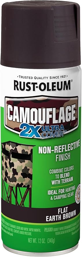 CAMOUFLAGE SPRAY PAINT PROVIDES A NON-REFLECTIVE, ULTRA-FLAT FINISH FOR MAXIMUM HIDING; DRIES FAST; INDOOR/OUTDOOR SURFACES; LONG LASTING DURABILITY