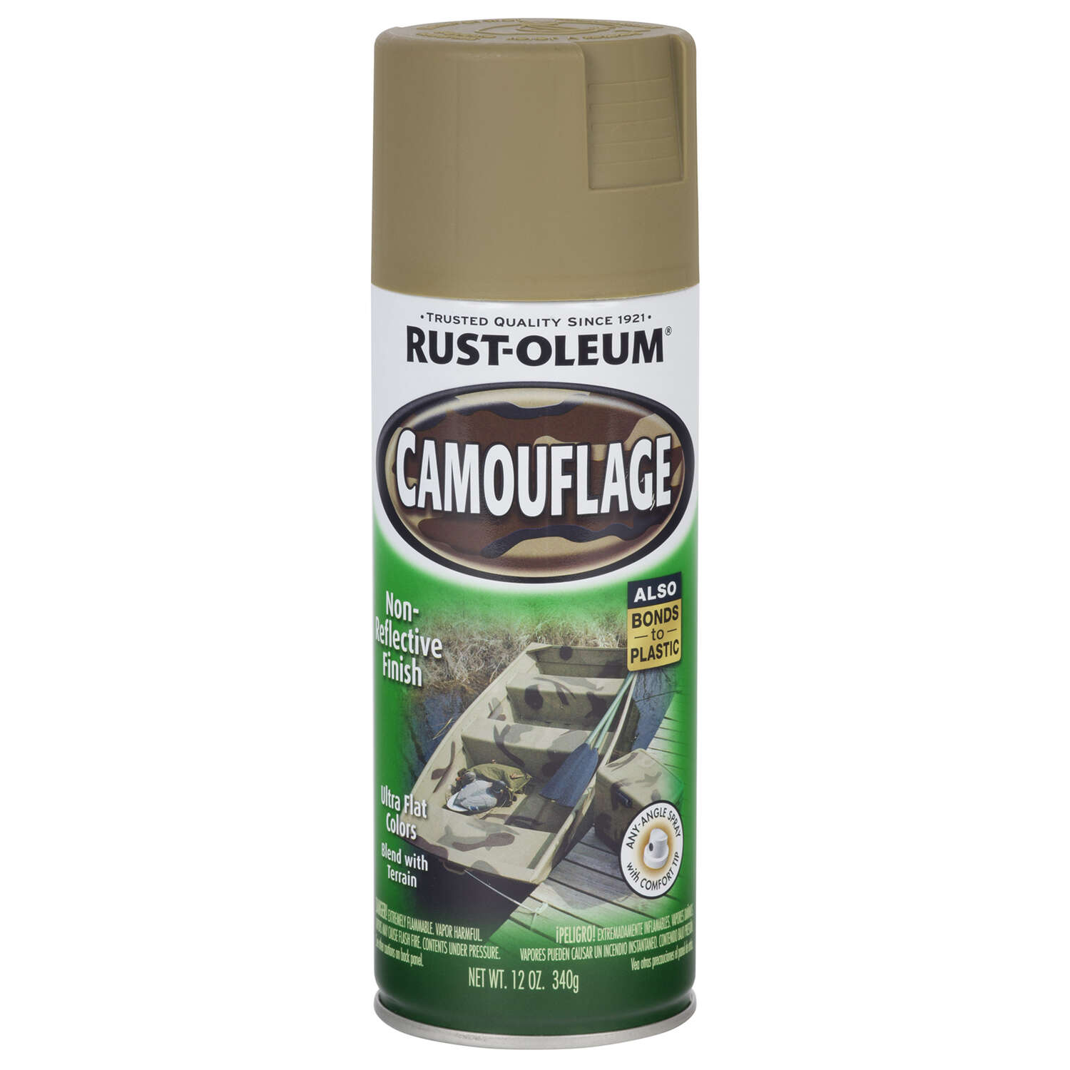 CAMOUFLAGE SPRAY PAINT PROVIDES A NON-REFLECTIVE, ULTRA-FLAT FINISH FOR MAXIMUM HIDING; DRIES FAST; INDOOR/OUTDOOR SURFACES; LONG LASTING DURABILITY