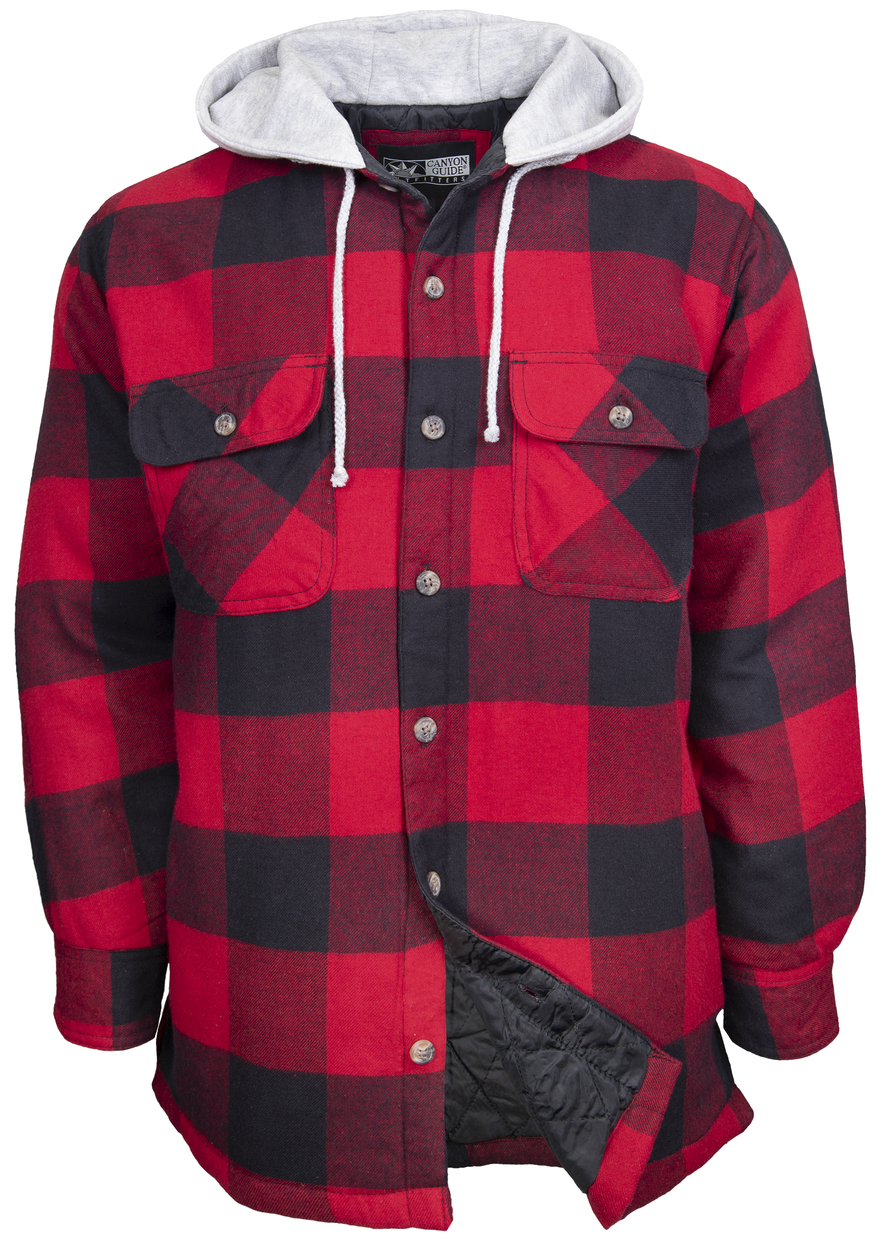 THE CANYON GUIDE MEN'S BIG BEAR QUILTED FLANNEL JACKET HAS ALL THE FEATURES YOU WANT IN A LINED FLANNEL SHIRT JACKET. 3 PIECE HOOD TO FIT OVER YOUR HARD HAT, 2 CHEST POCKETS AND 2 LOWER ON SEAM POCKETS GIVE YOU PLENTY OF STORAGE ROOM. PERFECT FOR THOSE COOL FALL OR WINTER DAYS.Specifications