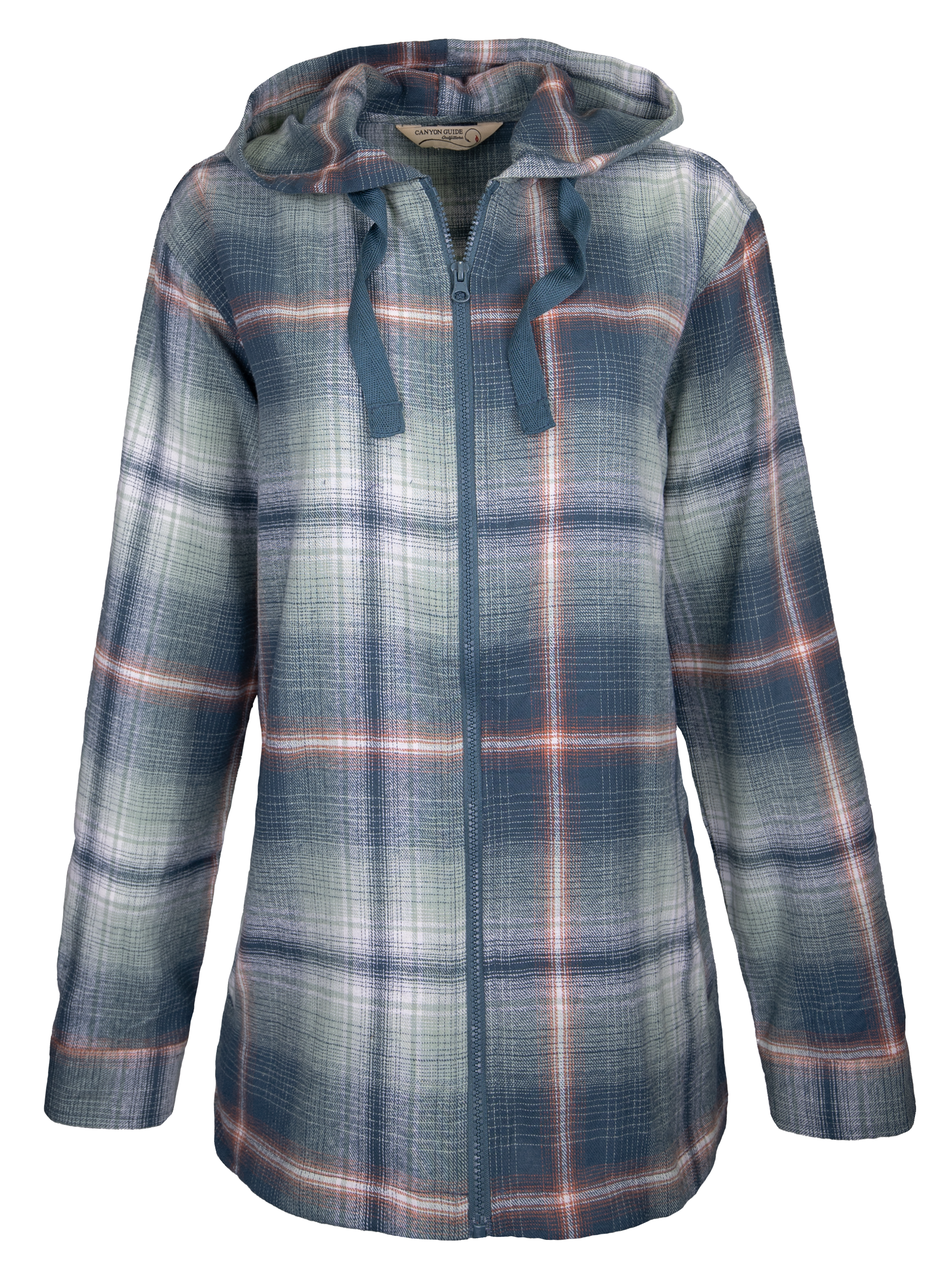 THE CANYON GUIDE CHARLEE IS A LIGHT WEIGHT, FULL ZIP HOODED FLANNEL JACKET. THIS IS A GREAT CASUAL PIECE THAT CAN BE WORN ON ITS OWN OR AS A LAYERED PIECE. MADE OF 100% COTTON WITH TWO SIDE POCKETS.Specifications