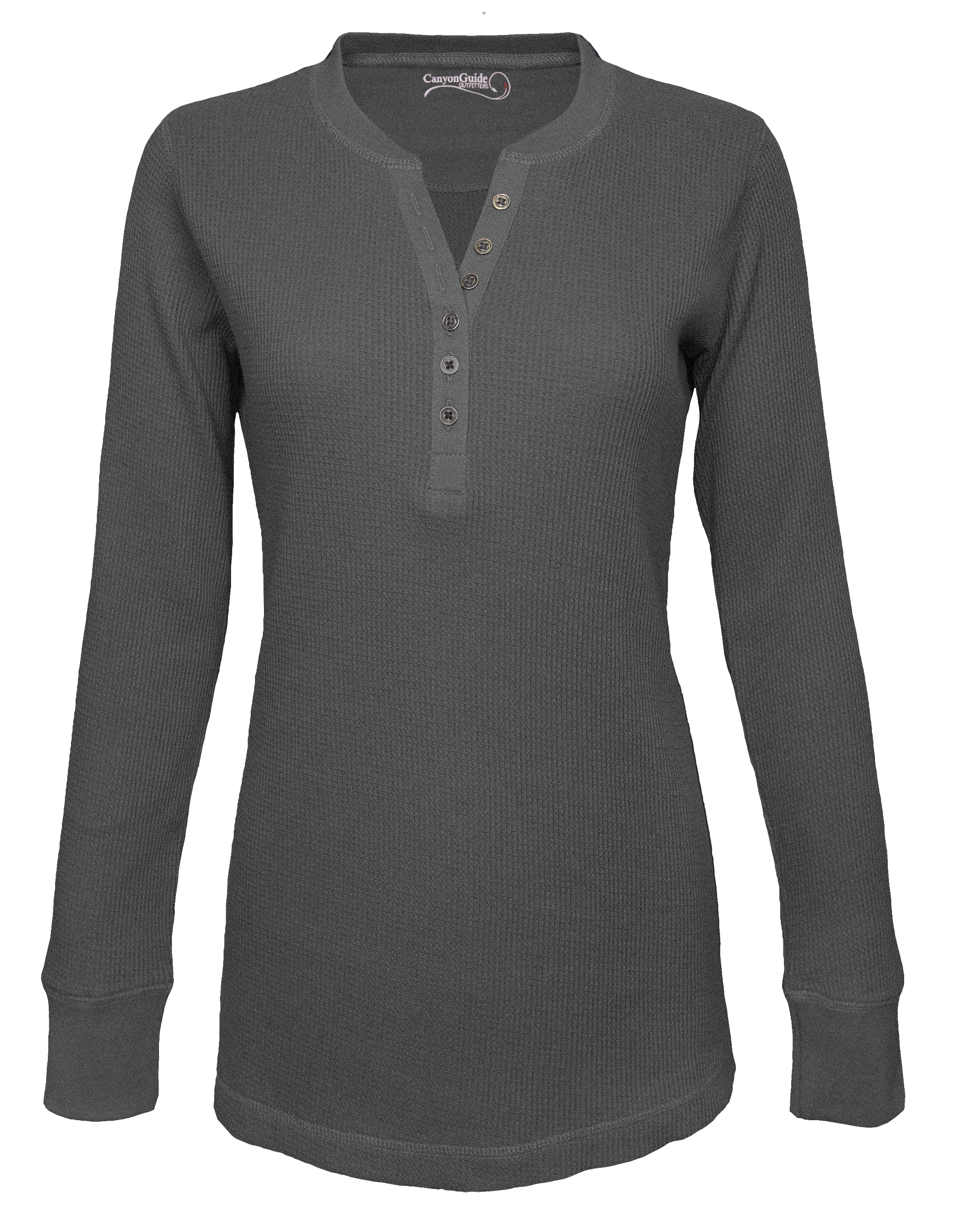 CANYON GUIDE WOMENS LONG SLEEVE HENLEY SHIRT IS A TRADITIONAL WAFFLE HENLEY WITH A SIX METAL BUTTON PLACKET. THIS SHIRT IS GREAT FOR LAYERING OR EVERYDAY CASUAL WEAR.Specifications