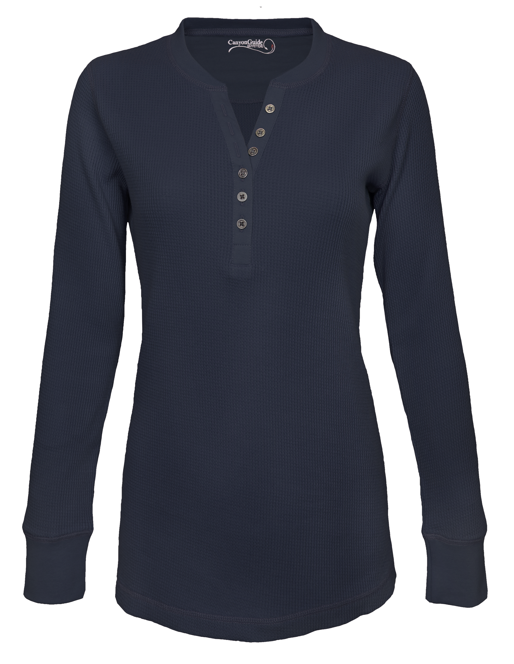 CANYON GUIDE WOMENS LONG SLEEVE HENLEY SHIRT IS A TRADITIONAL WAFFLE HENLEY WITH A SIX METAL BUTTON PLACKET. THIS SHIRT IS GREAT FOR LAYERING OR EVERYDAY CASUAL WEAR.Specifications