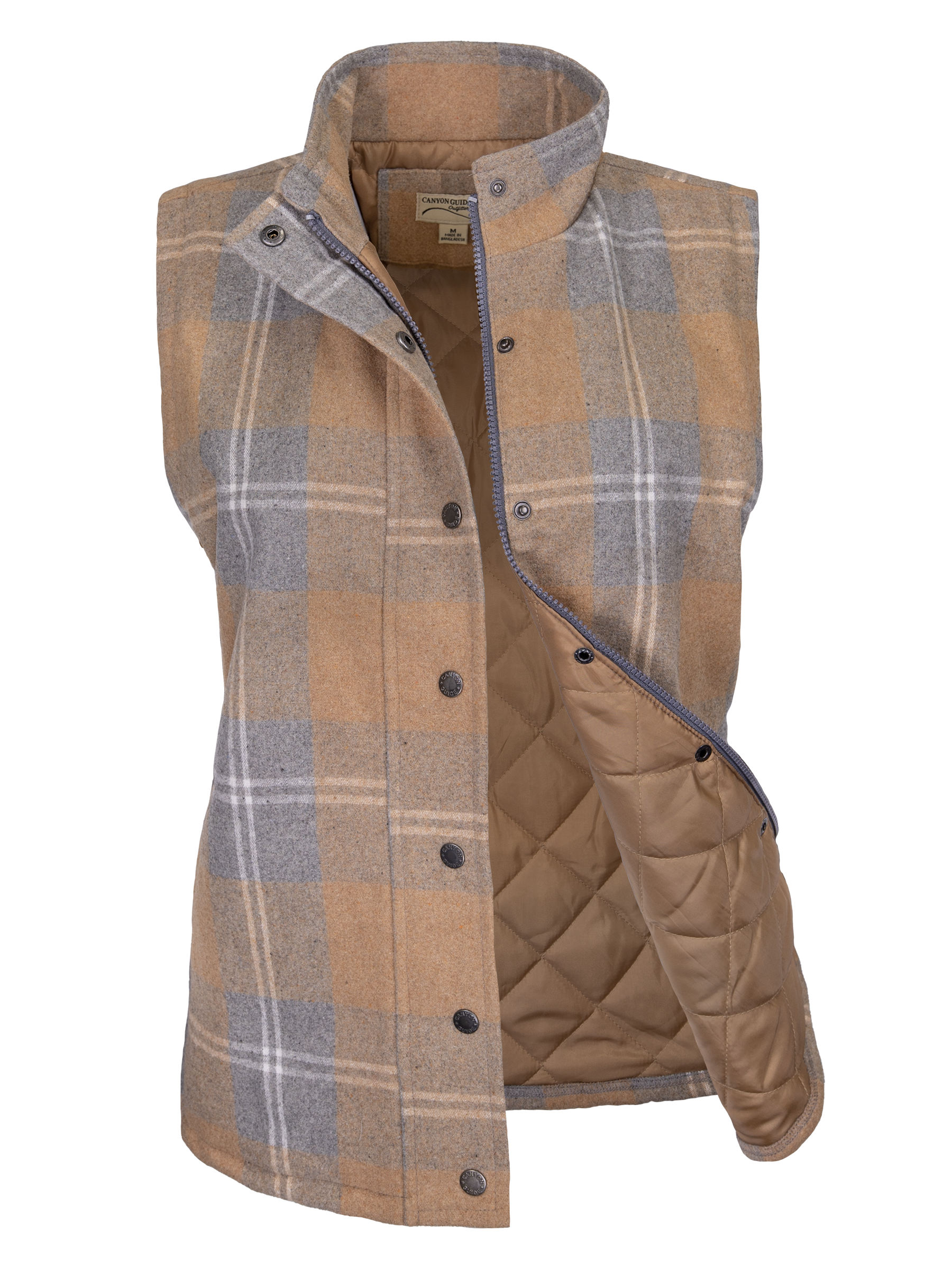 THE CANYON GUIDE LAURA VEST IS A POLYESTER AND WOOL BLEND VEST CONSTRUCTED OF 90% POLYESTER AND 10% WOOL OFFERING A GREAT OUTERWEAR PIECE WITH A STAND ALONE COLLAR AND DIAMOND QUILTED LINING. A GREAT WAY TO BE WARM AND COZY.Specifications