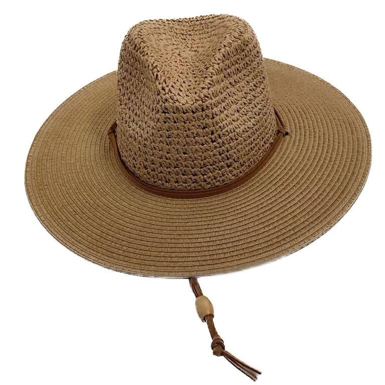A GREAT WESTERN LOOK IN THIS LIFEGUARD STYLE WOMENS HAT MADE OF HAND CROCHETED, 100% PAPER AND FEATURING A 4 INCH BRIM, CHIN CORD AND SWEATBAND ON THE INSIDESpecifications