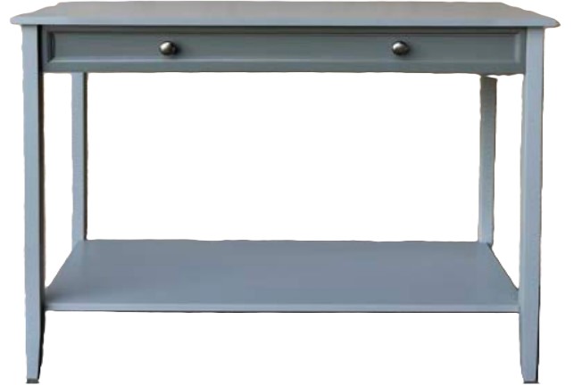 Acacia Wood Console Table w Full width Drawer and Bottom Shelf; Solid Acacia Legs and Drawer Front; Gray Finish w Brushed Nickel Pulls; Wood Drawer Glides; Size: 40"W x 14"D x 31"HSpecifications