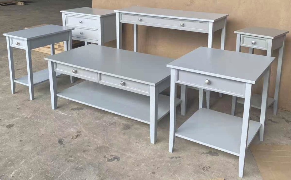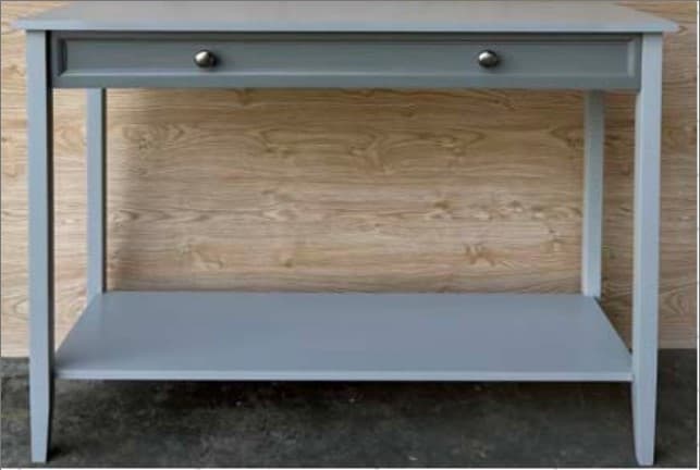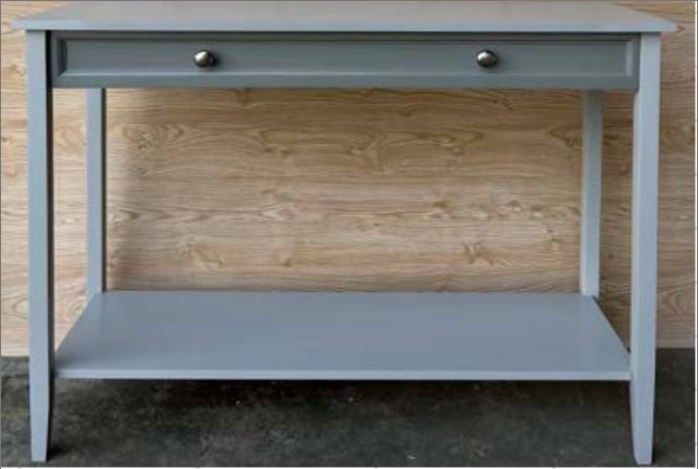 Acacia Wood Console Table w Full Size Drawer and Bottom Shelf; Gray Finish w Brushed Nickel Pulls; Size: 40"W x 14"D x 31"H; Solid Acacia Legs and Drawer Front; Wood Drawer Glides
