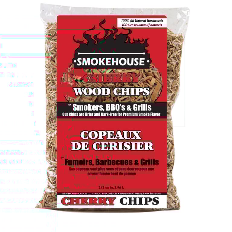 If you want classic smoke flavor that’s been tried and true over the ages, stick with these cherry smoking wood fine chips and you’ll be smoking like a pro. These cherry wood fine chips are made with 100-percent cherry wood and a base wood of Pacific Northwest alder making great combination of rich, smoky flavor and an added blend of neutral, balancing smoke. Start smoking like a pro! Smokehouse Products fine wood chips are made from 100-percent natural hardwoods, with no binders, waxes or unknown secret ingredient. These hardwood smoking fine wood chips are flavored with 100-percent real hardwoods, not oils or additives. You can use these hardwood smoking wood fine chips on all outdoor BBQ grills, gas grills, and charcoal grills. The Smokehouse alder fine Wood Chips are famous for their quality and consistency so that you know each time you make your favorite recipe, it’s going to have the same great taste you have come to expect.Specifications