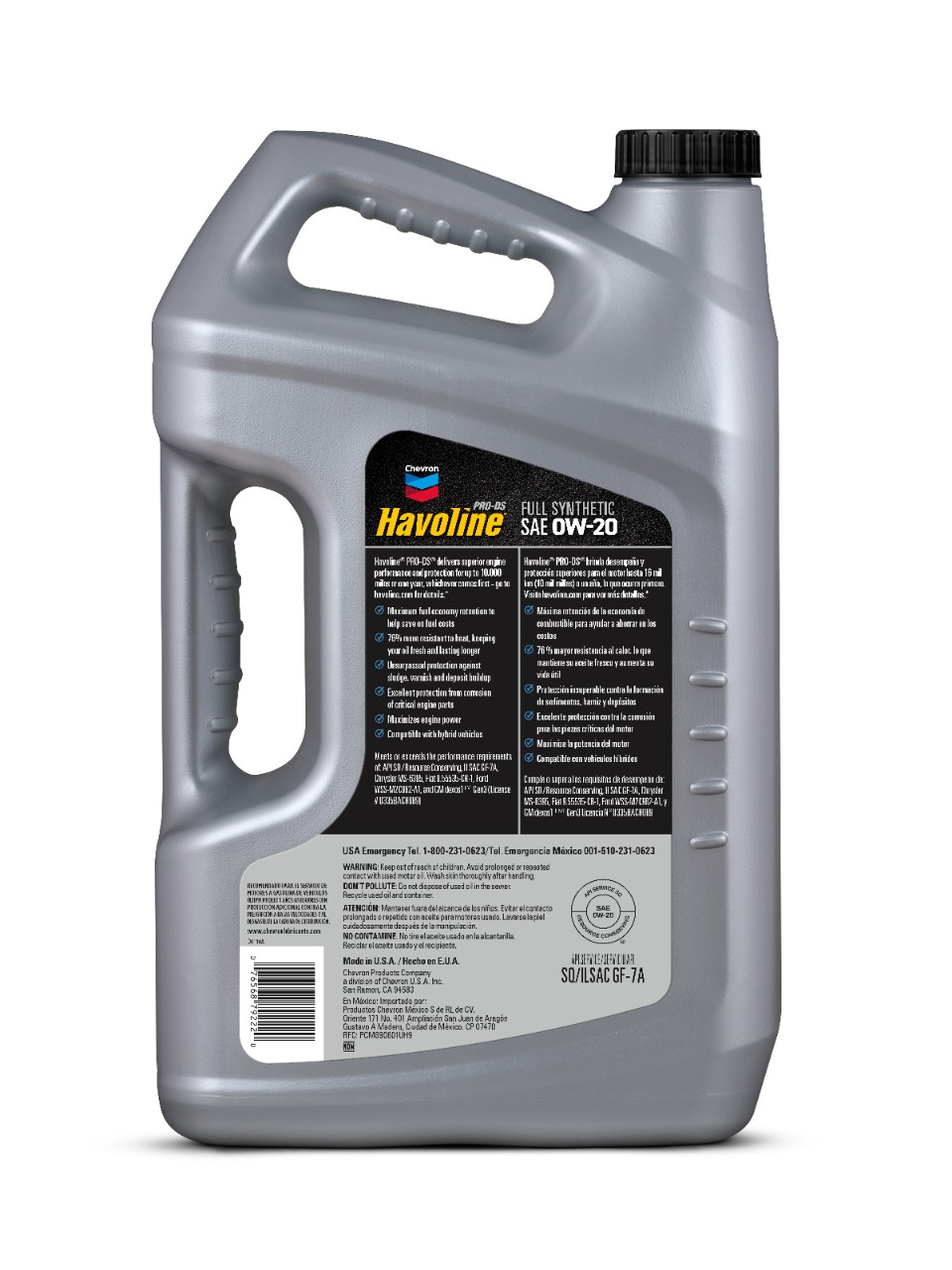 Havoline ProDS Full Synthetic Motor Oils with Deposit Shield Technology are specially engineered for the highest level of protection demanded by high-performance engines. They exhibit outstanding thermal and shear stability to control viscosity and continue to provide top performance and protection even during extended oil drain intervals. They provide an extra measure of protection for your investment in a sport utility vehicle SUV high performance or luxury cars. Havoline ProDS Full Synthetic Motor Oils with Deposit Shield Technology give advanced protection to high output supercharged and turbocharged performance vehicles. Havoline ProDS Full Synthetic Motor Oils with Deposit Shield Technology are formulated using 100% synthetic base stocks for top performance. The exceptional volatility and stability of synthetic base stocks promotes low oil consumption fast engine starting especially in cold weather and extremely fast lubrication of all moving parts. In addition a special blend of additives protects the engine against harmful deposits and wear. SAE 0W-20 is licensed under the dexos1 Gen 2 specification License no. D10216GL089. It can increase engine efficiency and improve fuel economy up to 2% compared with other common lubricant grades.Specifications