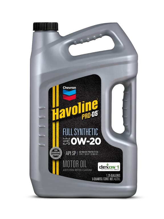 Continues to provide top performance and protection even during extended oil drain intervals; D10216GL089; Exhibits outstanding thermal and shear stability to control viscosity; Havoline ProDS Full Synthetic Motor Oils with Deposit Shield Technology are formulated using 100% synthetic base stocks for top performance; Havoline ProDS Full Synthetic Motor Oils with Deposit Shield Technology give advanced protection to high output supercharged and turbocharged performance vehicles; It can increase engine efficiency and improve fuel economy up to 2% compared with other common lubricant grades; Provides an extra measure of protection for your investment in a sport utility vehicle SUV high performance or luxury cars; SAE 0W-20 is licensed under the dexos1 Gen 2 specification License no; Special blend of additives protects the engine against harmful deposits and wear; Specially engineered for the highest level of protection demanded by high-performance engines; The exceptional volatility and stability of synthetic base stocks promotes low oil consumption fast engine starting especially in cold weather and extremely fast lubrication of all moving parts