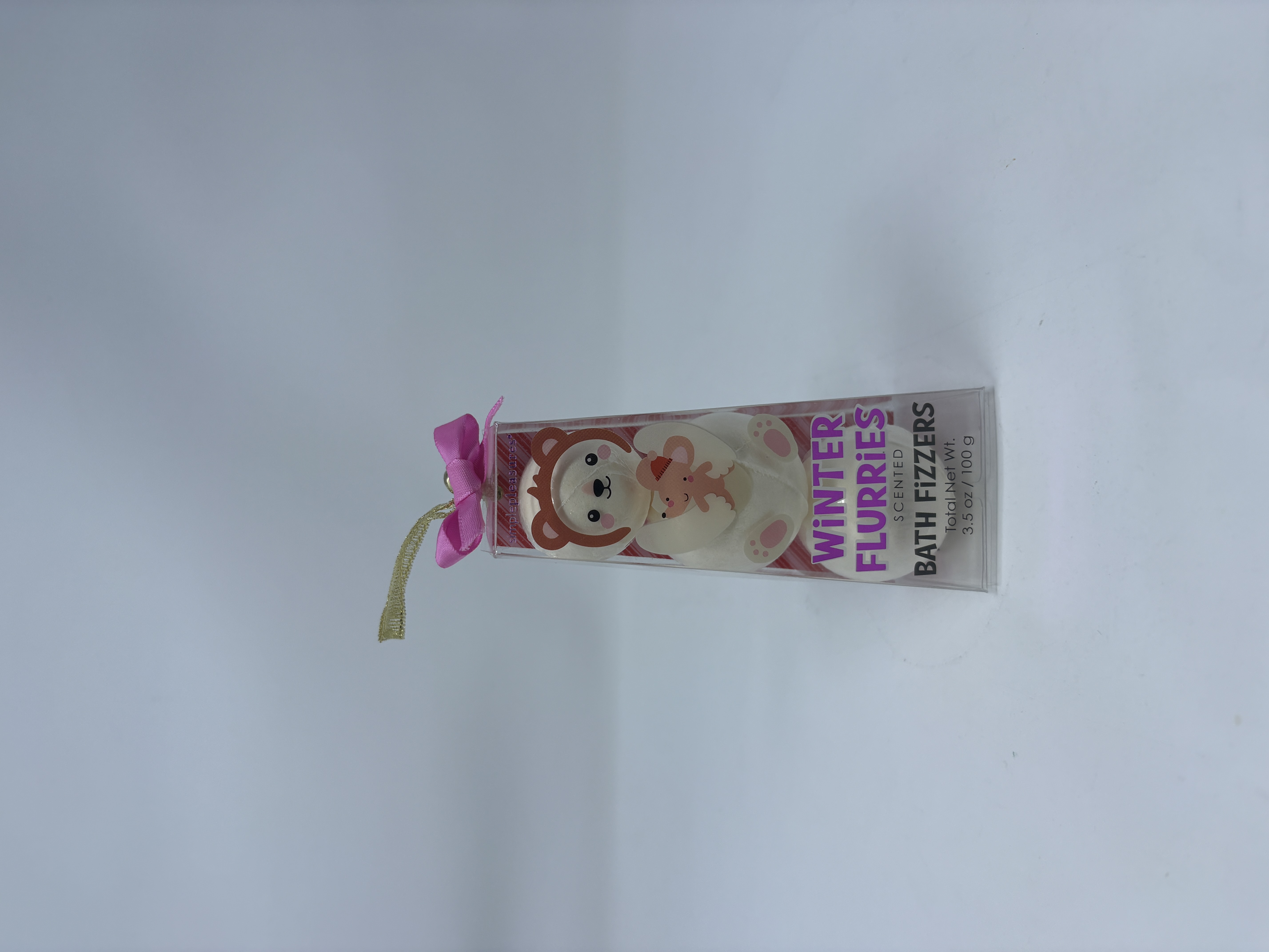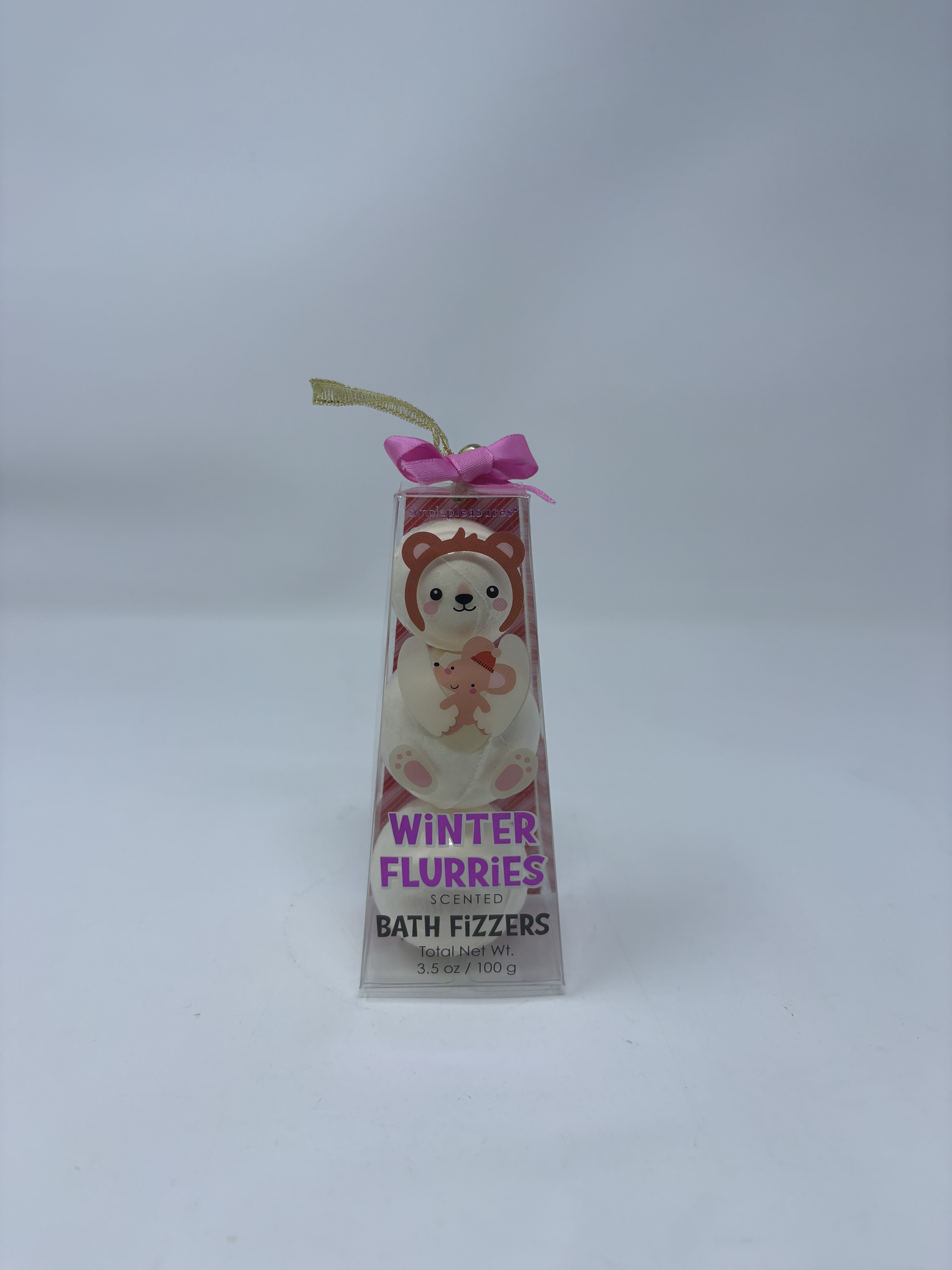 This is a set of 3 bath fizzers. It is winter furries scented and comes with a bow and bell on top. The set is winter themed and has a polar bear on the front with a christmas mouse. The backdrop is candy cane themed to hint at Christmas, making it a great self purchase or gift during the holiday season.Specifications