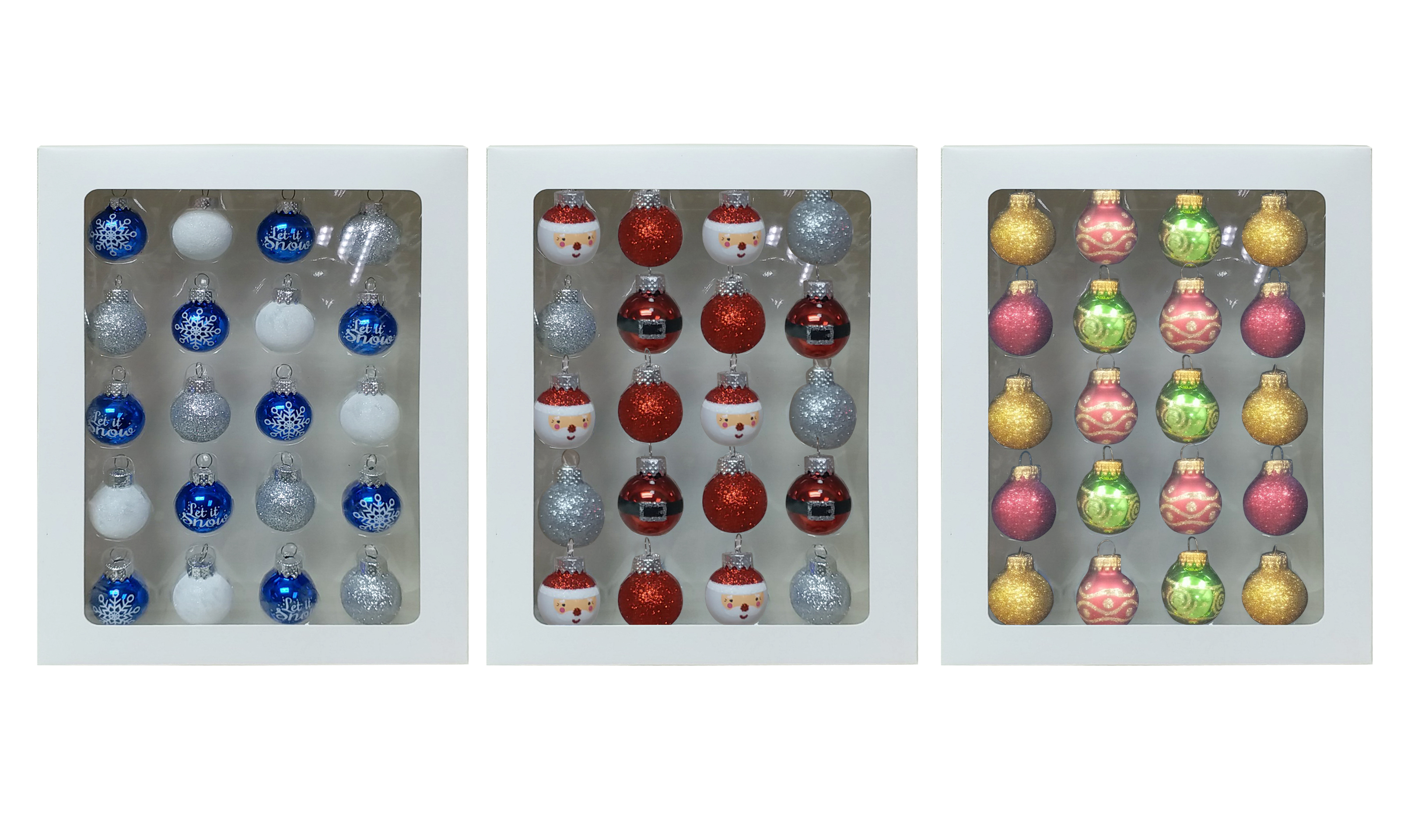 25MM Glass Ornaments Assorted Colors; MADE OF GLASS AND METAL