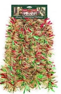 This Christmas Tinsel Garland can be displayed over doors, windows, fireplace mantels, or stairway railings in indoor or covered outdoor locations.Specifications