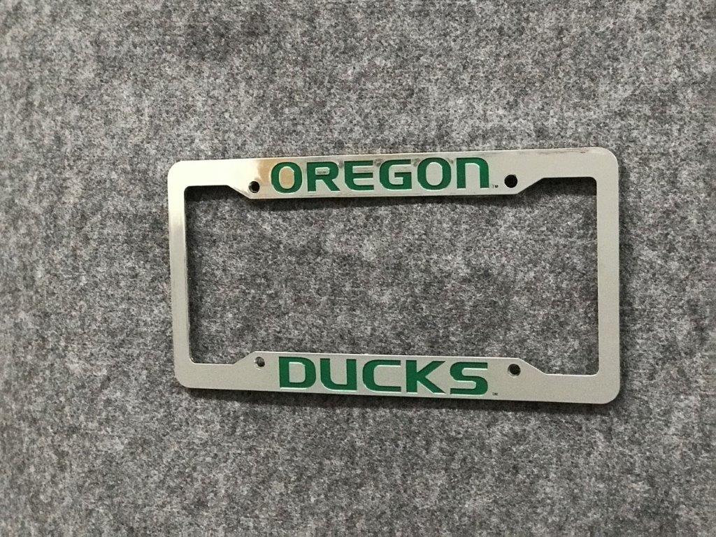CHROME PLASTIC UNIVERSAL FIT LICENSE FRAME RECESSED GREEN COPY READS OREGON DUCKS