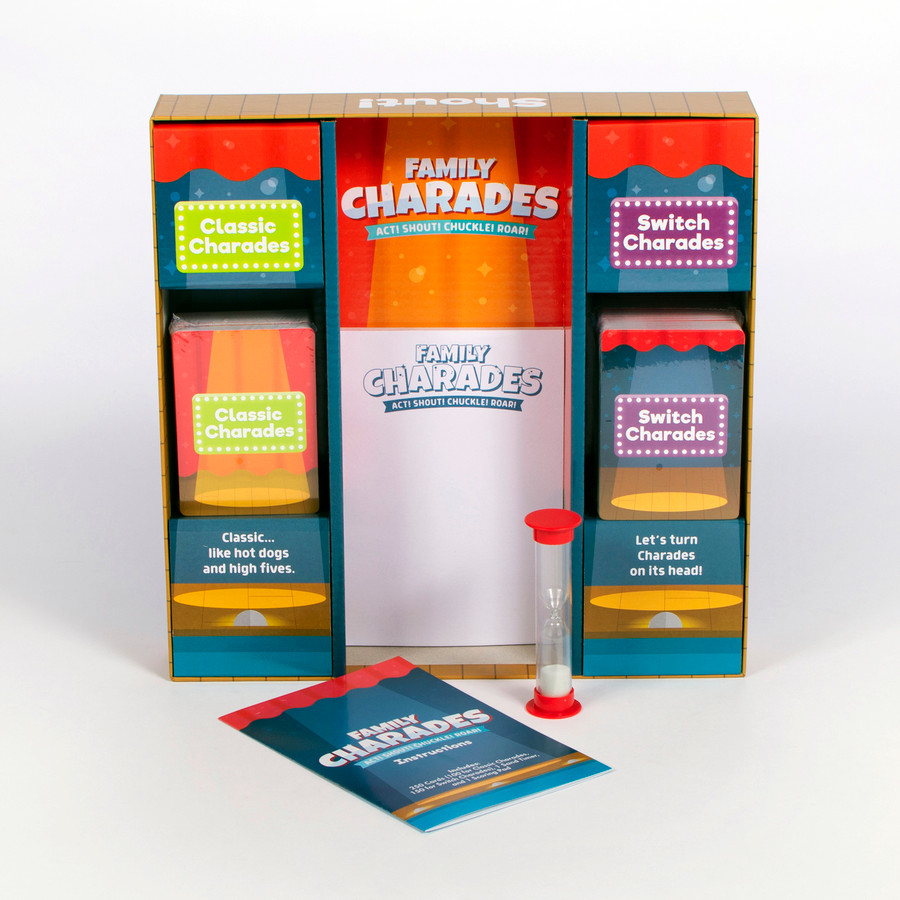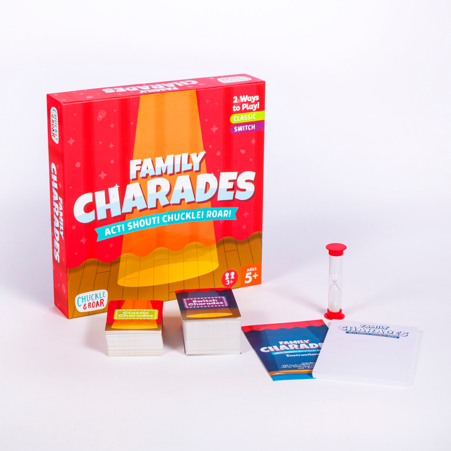 Bring laughter to family game night with Chuckle & Roar Classic Charades: Act! Shout! Chuckle! Roar! Designed for ages 5+ and 3 or more players, this high-energy party game features two exciting ways to play. Classic Charades and Switch Charades for nonstop fun and variety. With 750 charades ideas across 250 cards, every round feels fresh and engaging. Picture-based clues make it easy for non-readers to join in, while the included sand timer and scoring pad add structure and excitement. Perfect for families, parties, and group gatherings, this charades game guarantees big laughs for all ages.Specifications