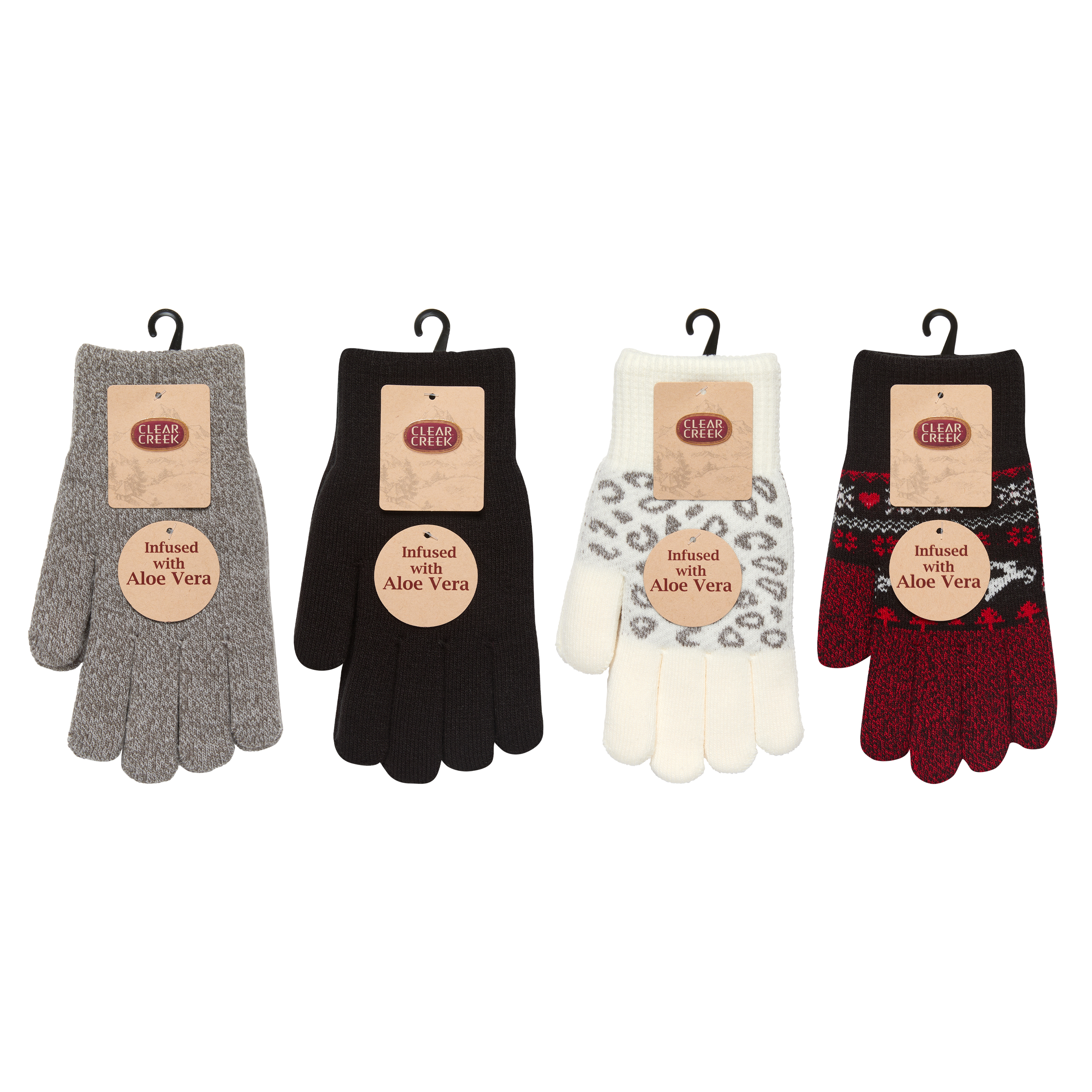 TREAT YOUR HANDS TO CLEAR CREEK WOMENS LINED GLOVES INFUSED WITH NATURALLY SOOTHING ALOE VERA. THESE SUPER-SOFT GLOVES CONTINUALLY MOISTURIZE WHILE SURROUNDING YOUR HANDS IN PLUSH COMFORT. OSFMSpecifications