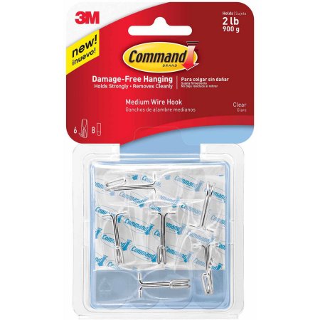 Life is easier when everything has its place. Organize your home damage-free with Command Wire Hooks. Command Hooks let you hang what you want, where you want, without the hassle of tools and nails. Command Clear products feature a clear hook and strip, so they practically disappear on your wall. Command Strips hold strongly on a variety of smooth, finished surfaces, and these adhesive hooks remove cleanly with no sticky residue or damage left behind. Now you can organize your home or office just the way you want with Command indoor hooks.Specifications
