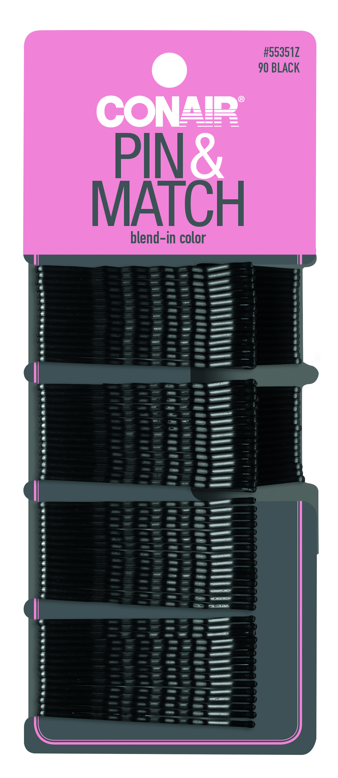Black Hair Pins; Conair; Holds styles on any hair type; Keep the threads taut back; Secure two with a discreet hold