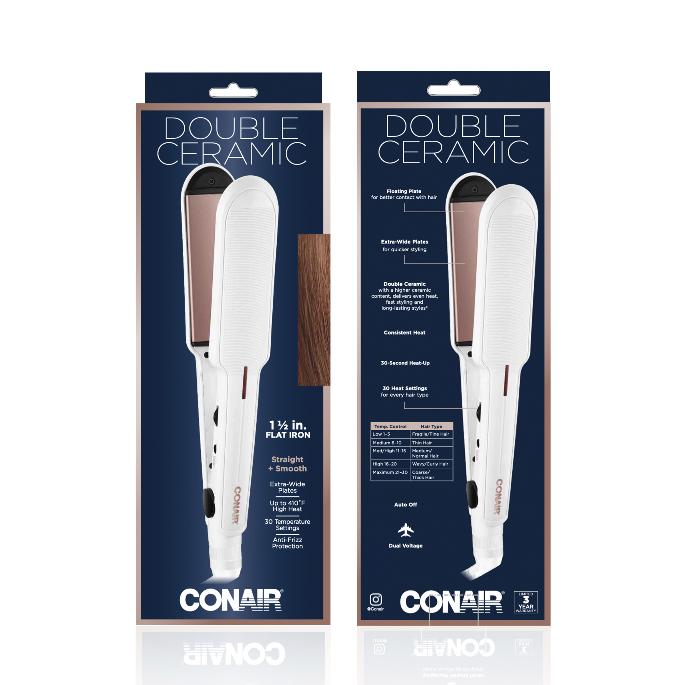 Double Ceramic technology provides a higher ceramic content for even heat that's gentle on hair with anti-frizz control for silky smooth styles. Wide plates and high 410 degree F heat let you create smooth, straight styles fast. Thirty heat settings offer the right temperature for your hair!Specifications