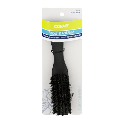 Conair styling essentials slim grooming brush with 100 percent boar bristles gives any style a professional finish. the soft natural boar bristles evenly distribute the scalps natural oils to leave a healthy shine. modified paddle shape adds shine and smoothes bobs layered focused or bi-level cuts. use for everyday brushing on fine or thin hair or sensitive scalps. unique brush body is easy to keep clean just wash in warm water and air dry.Specifications