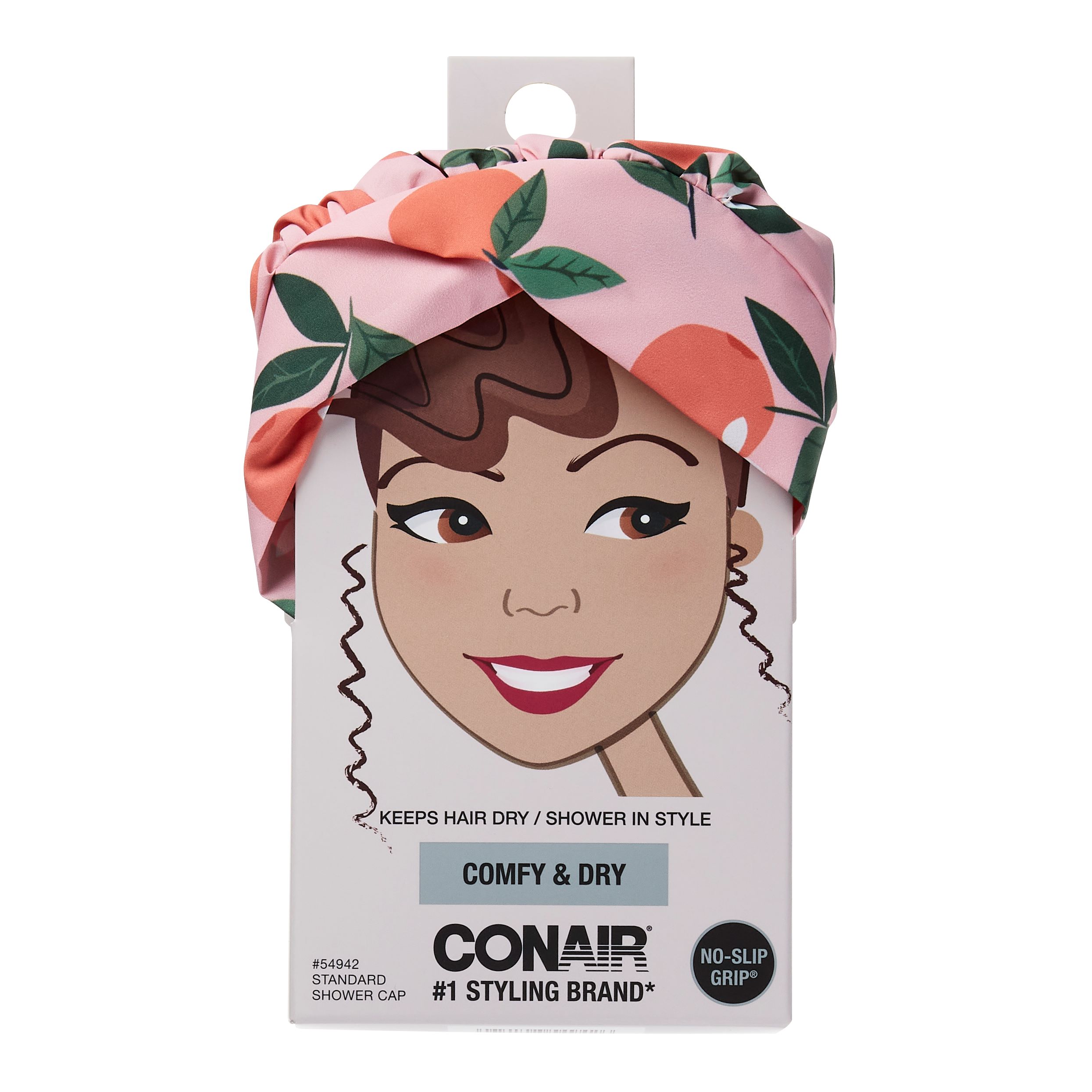 Comfy & dry; Keeps hair dry; No-slip grip; Shower in style