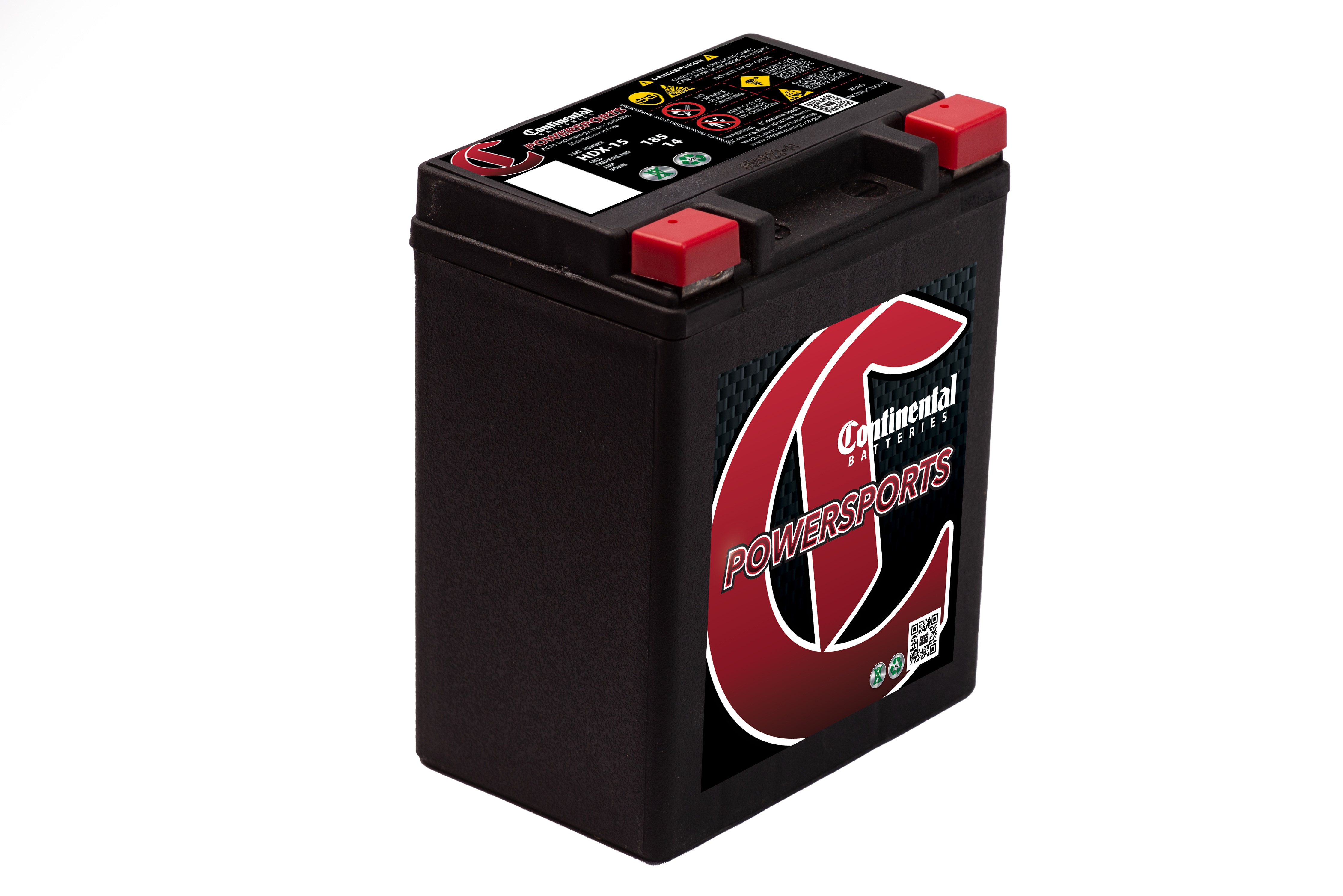 HDX 15Continental Battery Systems Powersport products are high-performance motorcycle batteries designed for those who demand the best from their bikes. We use the most advanced materials and components, and our products are renowned for their reliability and long life span. We make batteries for motorcycles, scooters, jet skis, and a wide range of other vehicles. Take to the road or water with confidence, knowing you are powered by Continental Battery Systems.Specifications