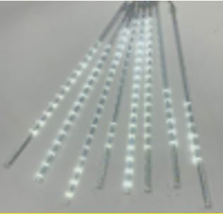 COOL WHITE METEOR LIGHTS WITH 8 STRIPS. FULL LENGTH IS 11.67 FT; LIGHTED LENGTH IS 21.5 FT.Specifications