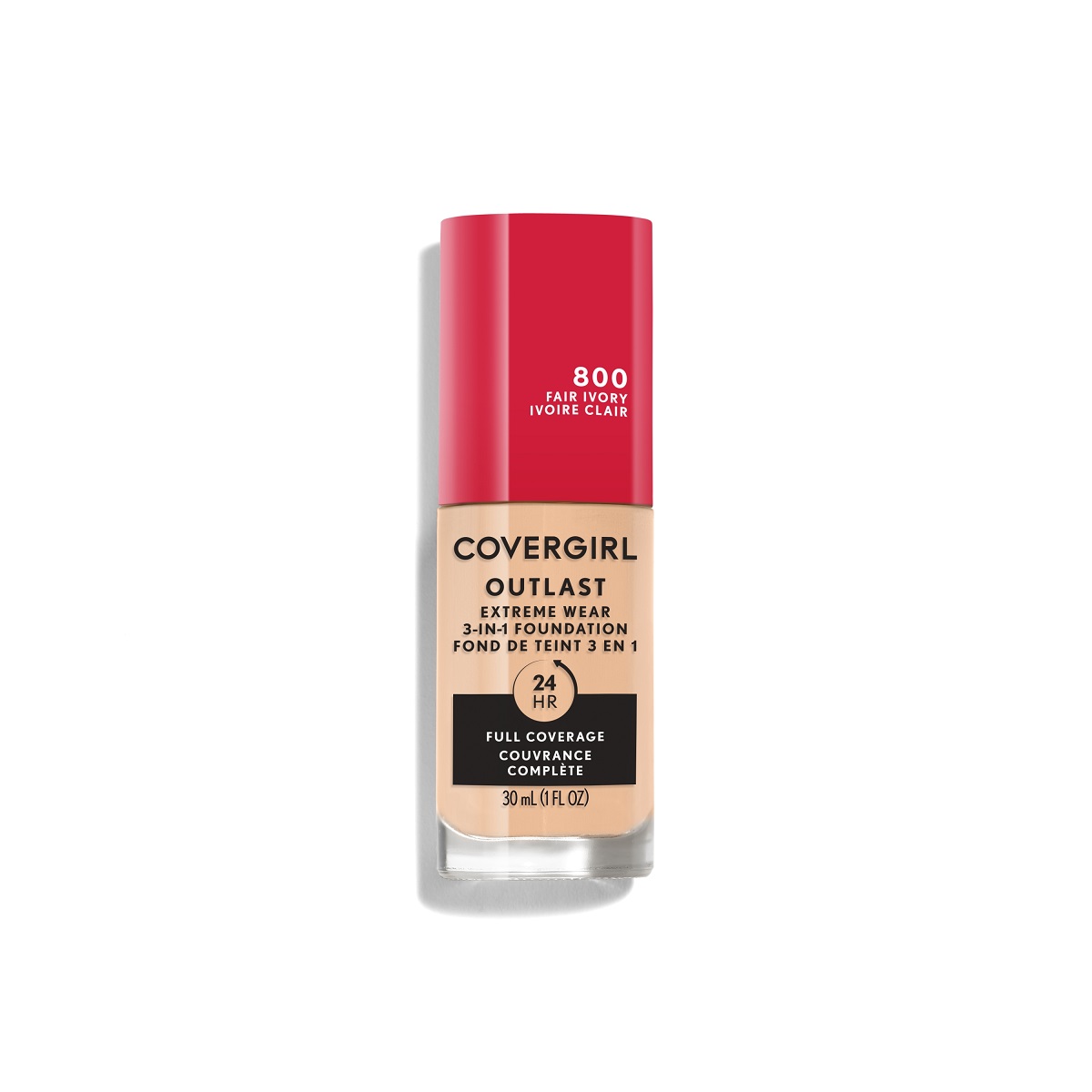Speed up your beauty routine with a long-lasting foundation, primer, and concealer all-in-one! Whether you dab on a little or a lot, the Covergirl Outlast Extreme Wear 3-in-1 Full Coverage Liquid Foundation is sure to be your go-to when it comes to providing the naturally flawless full coverage finish you crave. The lightweight, cake-free foundation has a 24-hour formula that blends seamlessly, covers imperfections, and is available in a variety of shades. Helping defend your skin against the elements, the hydrating, breathable foundation contains SPF 18 sunscreen and is sweat-, transfer-, and humidity-proof. Apply the face makeup using your fingertips, a foundation brush, or a makeup sponge. Pro-tip: Pair with an Outlast All Day Lip Color for an easy, breezy, long lasting look.Specifications