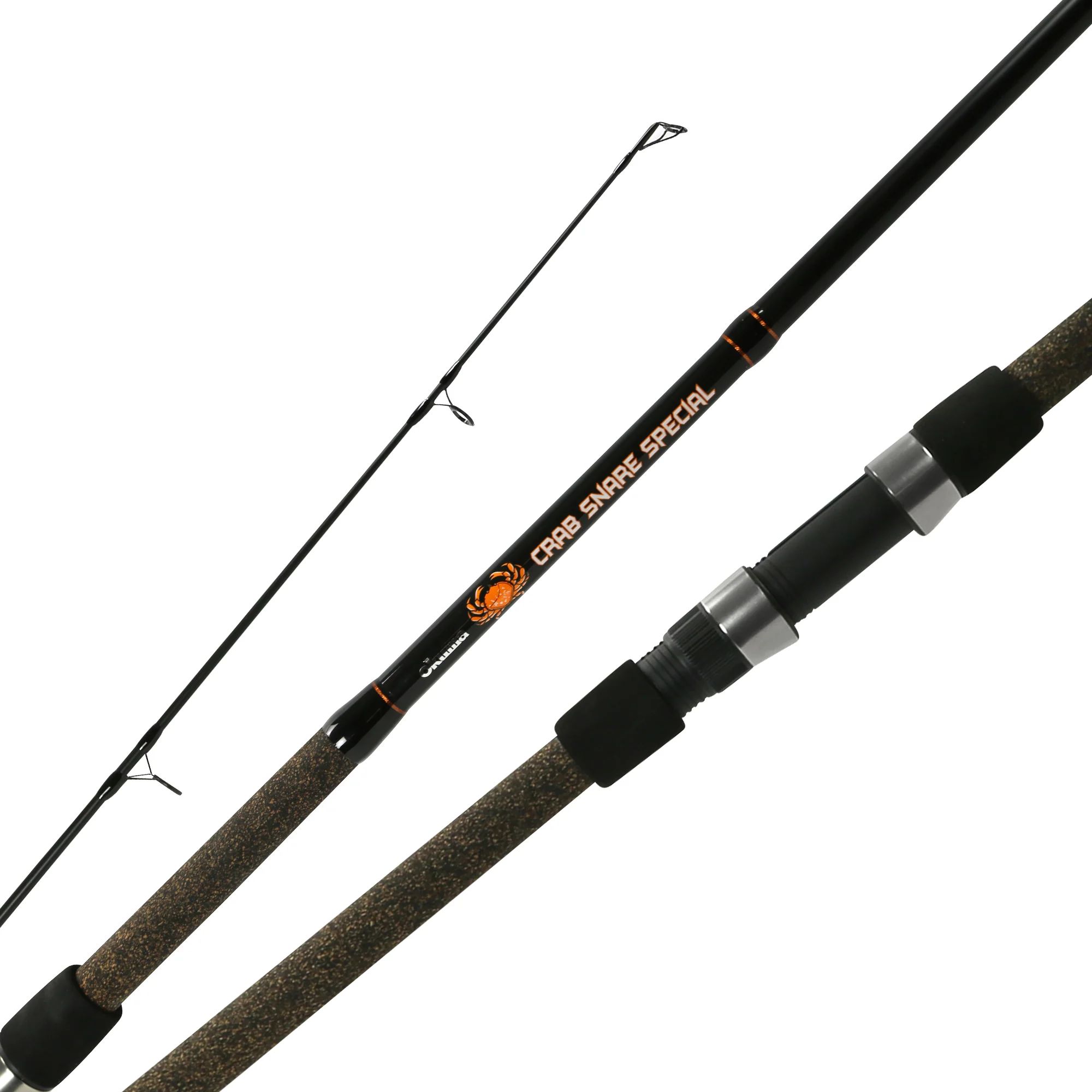 Specifically designed for Crab Snaring, Okuma introduces the Crab Snare Special Rod. The Crab Snare Special rod offers anglers a sensitive graphite composite blank and premium high-durability components that provide the power and strength needed to tackle strong currents and heavy water movement. The rod is two pieces for easy travel and rated for casting 3 to 8 ounces of weight and 20 to 40-pound line. The rod features aluminum oxide guide inserts, double-foot stainless steel guide frames, cork-wrapped nonslip fore and rear grips, and EVA cushions above and below the reel seat for all-day casting comfort.Specifications
