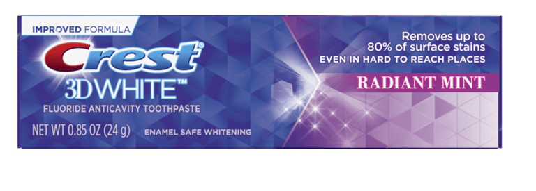 Brighten your smile with Crest 3D White Radiant Mint Whitening Toothpaste. It whitens your teeth by removing up to 80% of surface stains and protects against future stains. 3D White fluoride toothpaste also strengthens your tooth enamel and helps protect against cavities. Adults and children 2 years. & older: brush teeth thoroughly after meals or at least twice a day or use as directed by a dentist. Do not swallow. To minimize swallowing use a pea-sized amount in children under 6. Supervise children's brushing until good habits are established.Specifications