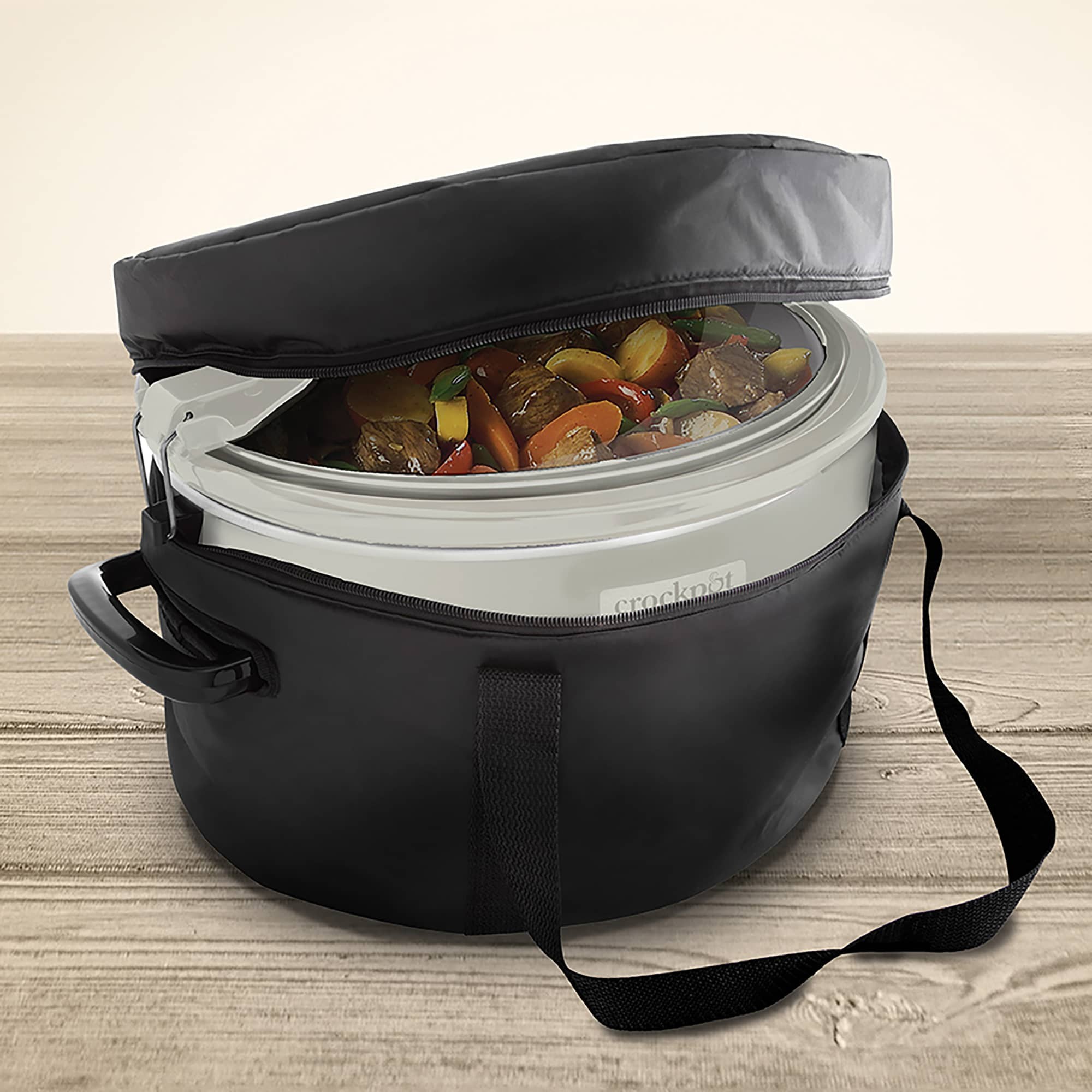 Cook meals on your schedule, and take them with you on-the-go, with the Crock-Pot 7-Quart Cook & Carry Programmable Slow Cooker. It has a travel-proof locking lid that seals tightly to prevent leaks and spills and a convenient insulated thermal carrying case to help keep food warm during transport to your favorite outings, parties, and tailgates. Its sturdy handles make lifting and carrying it a breeze, at home or on-the-go. Four pre-programmed settings allow you to select the perfect slow cooking time and temperature and the Auto-Warm setting keeps food at the ideal temperature until it's time to eat. The large 7-quart capacity, cooks meals for 9+ people, perfect for family meals or feeding a crowd. The stoneware pot and glass lid are dishwasher safe; and the removable bowl is also oven safe. With its Oat Milk Cream color, modern-vintage design, and programmable ease, this Crock-Pot Cook & Carry portable slow cooker seamlessly combines form and function to enhance any kitchen.Specifications