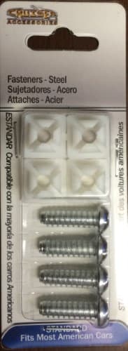 1/4 x 3/4 fasteners are designed for use with domestic vehicles; Easy to install; Includes 4 fasteners and 4 nylon screw grommets; Made of zinc plated steel; Standard designed for use with domestic vehicles