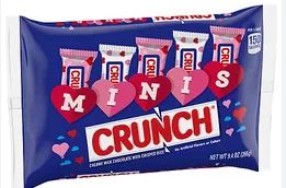 It's time to get your sweet treat on with CRUNCH Mini Size candy bars for Valentines. These perfectly mini-sized, crispy chocolate bars are small in size but big on taste. Packed with 100% creamy milk chocolate and crisped rice, these individually wrapped candy treats are easy to snack on and enjoy.Specifications