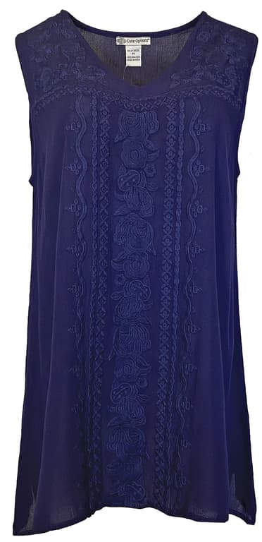 CUTE OPTIONS WOMENS SLEEVELESS TOP FEATURES A V NECK AND GORGEOUS EMBROIDERY. PERFECT FOR SUMMER.