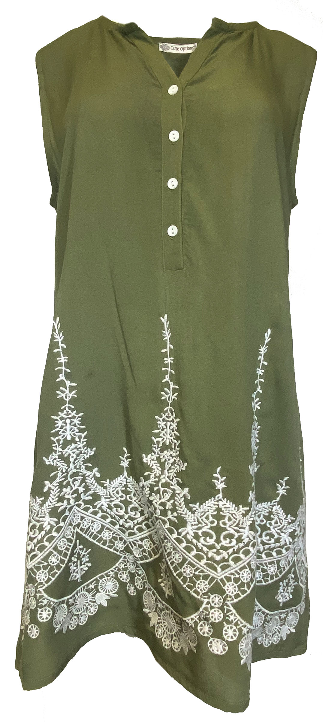 CUTE OPTIONS WOMENS SLEEVELESS TOP FEATURES A V NECK AND GORGEOUS CONTRASTING EMBROIDERY. THE PERFECT TOP FOR SUMMER.Specifications