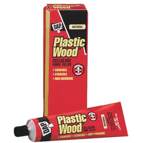 Repair holes and other issues in furniture pieces and more with Dap Plastic Wood Filler (21500). This material has the natural look of real wood and can be sanded, painted and stained to create a consistent appearance. Its special anti-shrink formula is suitable for both interior and exterior applications. This tube contains 1.5 oz of Dap wood filler.Specifications
