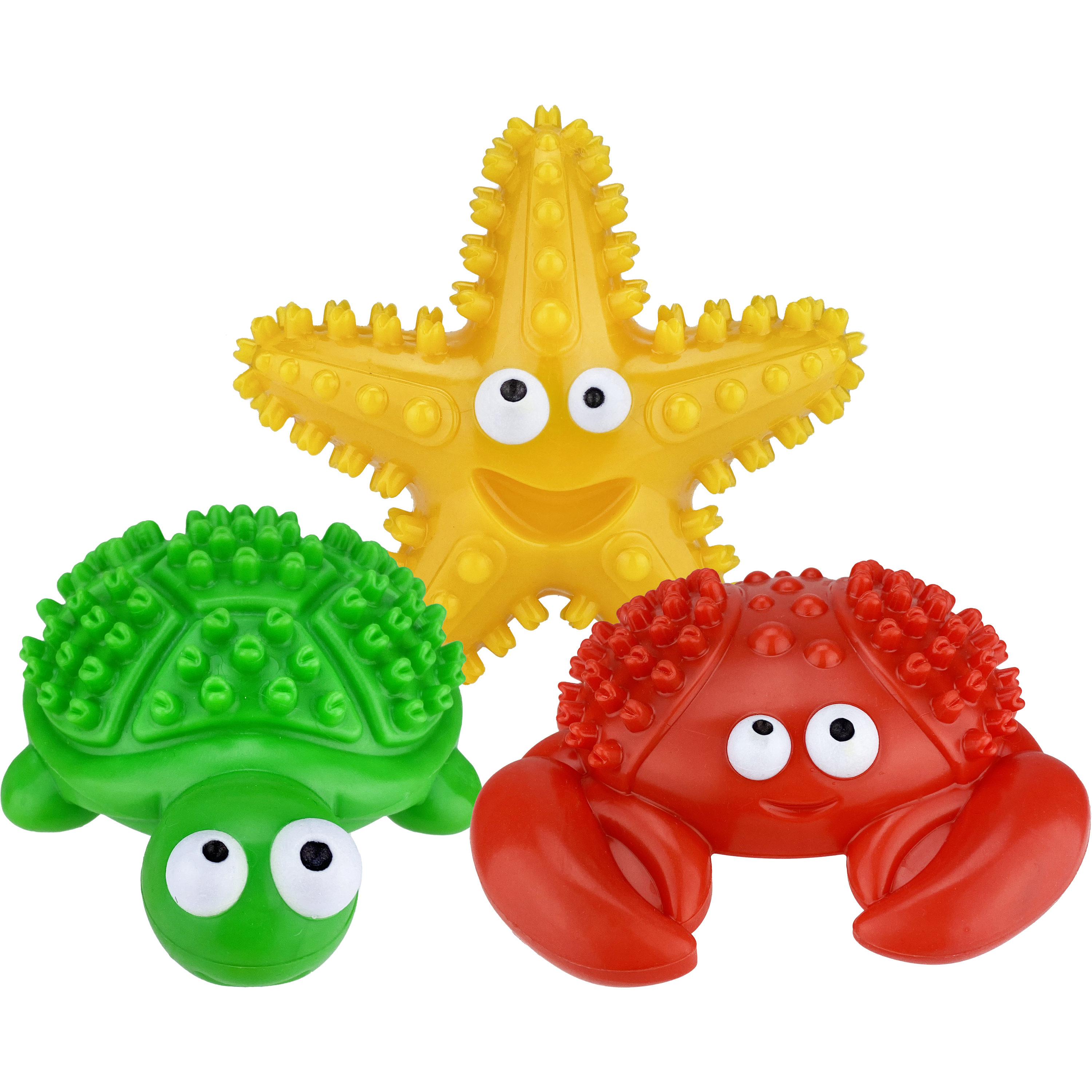 (WE CANNOT GUARANTEE A SPECIFIC STYLE OR COLOR) If you'd like us to choose for you, we are more than happy to do so. If not, then please visit us in store to pick your favorite color.Have your pooch dive under the sea to find their favorite sea creature! Deep Sea Teethers have a bumpy surface that allows for a gentle massage for teething pups. Assorted animal styles.Specifications