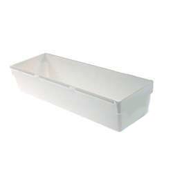 Interchangeable bins let you customize your drawer storage.; Made with sturdy white plastic for a clean addition to your kitchen office or bathroom drawers; The dimensions listed for each plastic bin are for the usable size of the compartment; These dividers are available in various sizes to let you create a customized drawer organizer