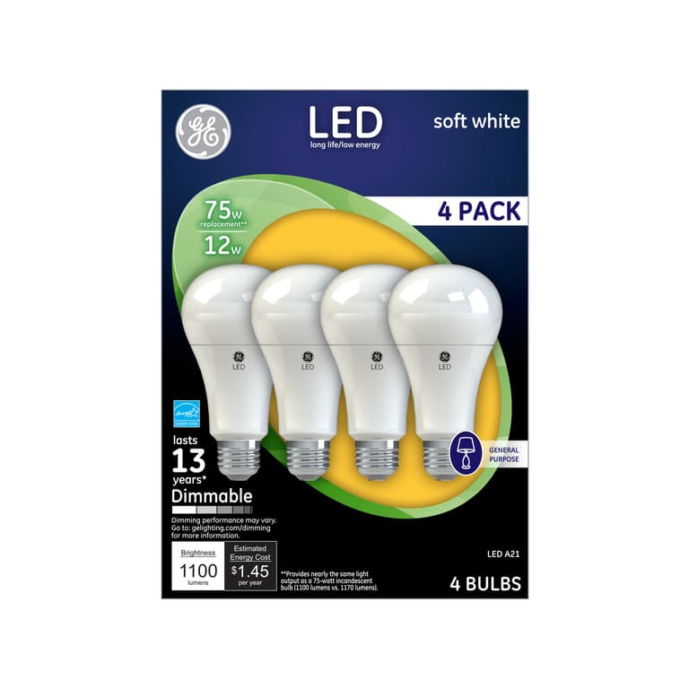 GE Basic LED Light Bulbs are the perfect general purpose non-dimmable light bulbs that fit lamps fixtures and more; The A19 light bulbs emit a cool bluish white daylight light with 5000 Kelvin color temperature; The Basic LED Light Bulbs are rated to last 9 years based on 3 hours of daily use. These long-lasting GE light bulbs will not disappoint; These LED lights replace traditional 60-Watt incandescent light bulbs while only using 10-Watts 750 lumens; These non-dimmable LED light bulbs save $55 on energy costs per light bulb versus a 60-Watt incandescent light bulb