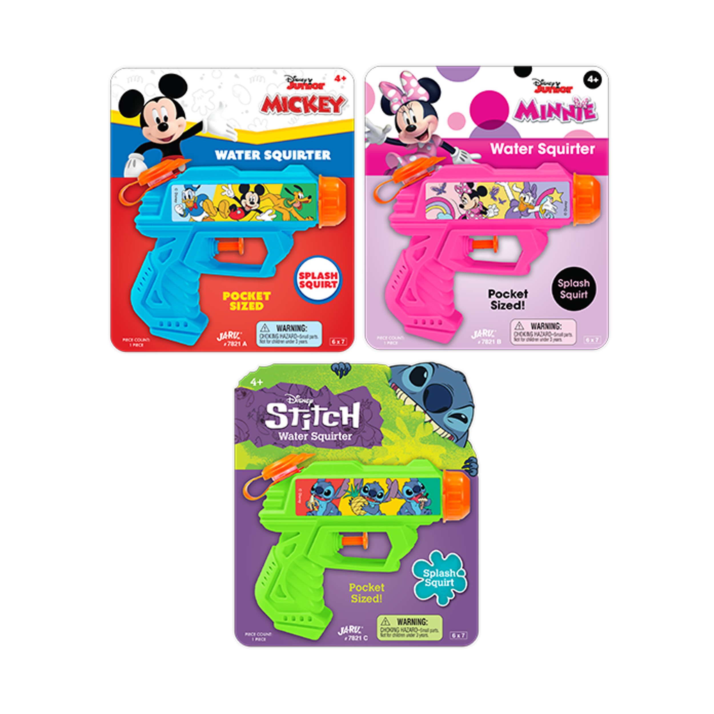 (We cannot guarantee a specific style) If you would like us to choose for you we are happy to do so. If not, please visit us in store to choose your favorite style.The Disney Water Squirter comes in a convenient pocket size in 3 different styles; Mickey, Minnie, and Stitch!The Disney Water Squirt Gun is designed for hours of water-blasting enjoyment. Whether at the pool, beach, or in the backyard, your child will have a blast soaking their way to fun-filled memories. With an easy-to-hold design, our water squirt gun is tailored for young adventurers.Specifications