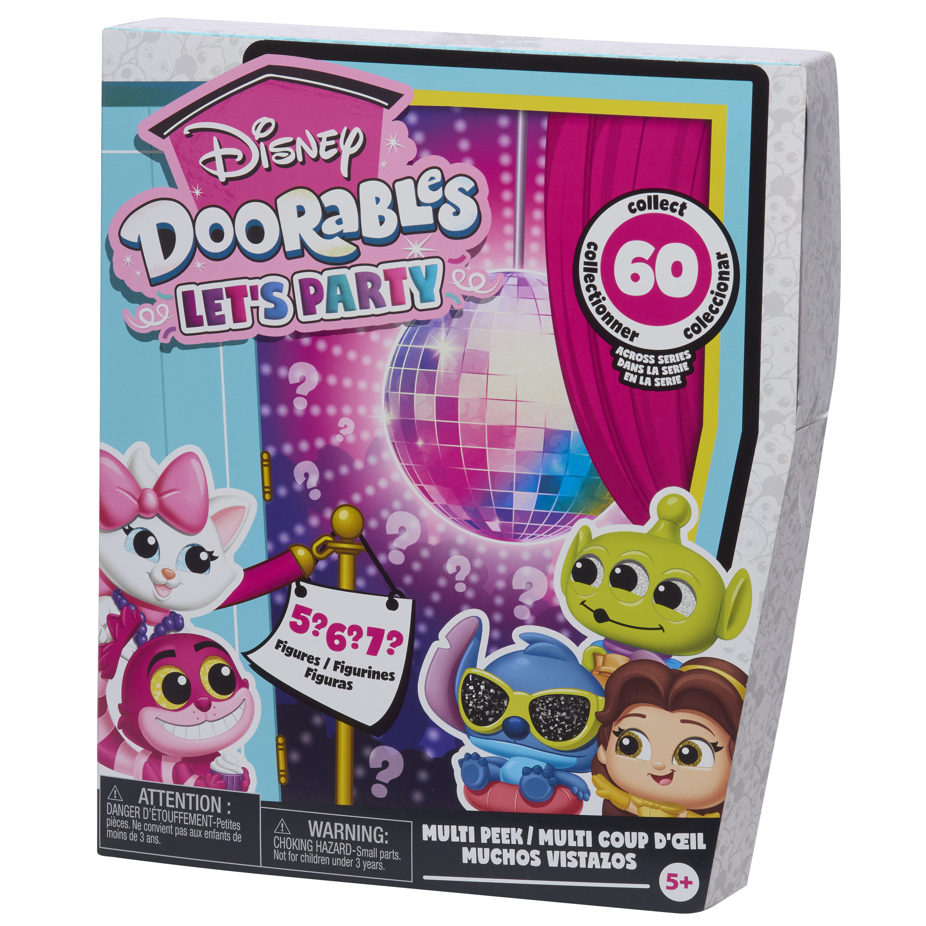 Behind every door, a surprise shindig is in store with the Disney Doorables Let’s Party Mini-Peek. Discover a guaranteed 2, but perhaps 3 delightful Doorables celebrating in one of 6 ways at the pool, a gala, at the rink, overnight, and as party animals. Each 1.5-inch toy figure is sculpted in a dynamic pose with Doorables signature style and glittery eyes. Look for Disney Stitch on a pool float, Jasmine dressed for a night of dancing, Animal in a drum, Tigger on skates, Disney and Pixar’s Sadness in her nightgown, and more. Chase 6 special edition figures worth celebrating! Find water-activated color changing Hank, Gus, twirling action Belle, bobblehead Eeyore, roller action Minnie Mouse, and sleepy-eyed Boo. Fans of Disney toys can collect across party theme, special edition kids’ toy figurines or favorite films. For the ultimate party, chase after all 60 toy figures (sets sold separately).Specifications