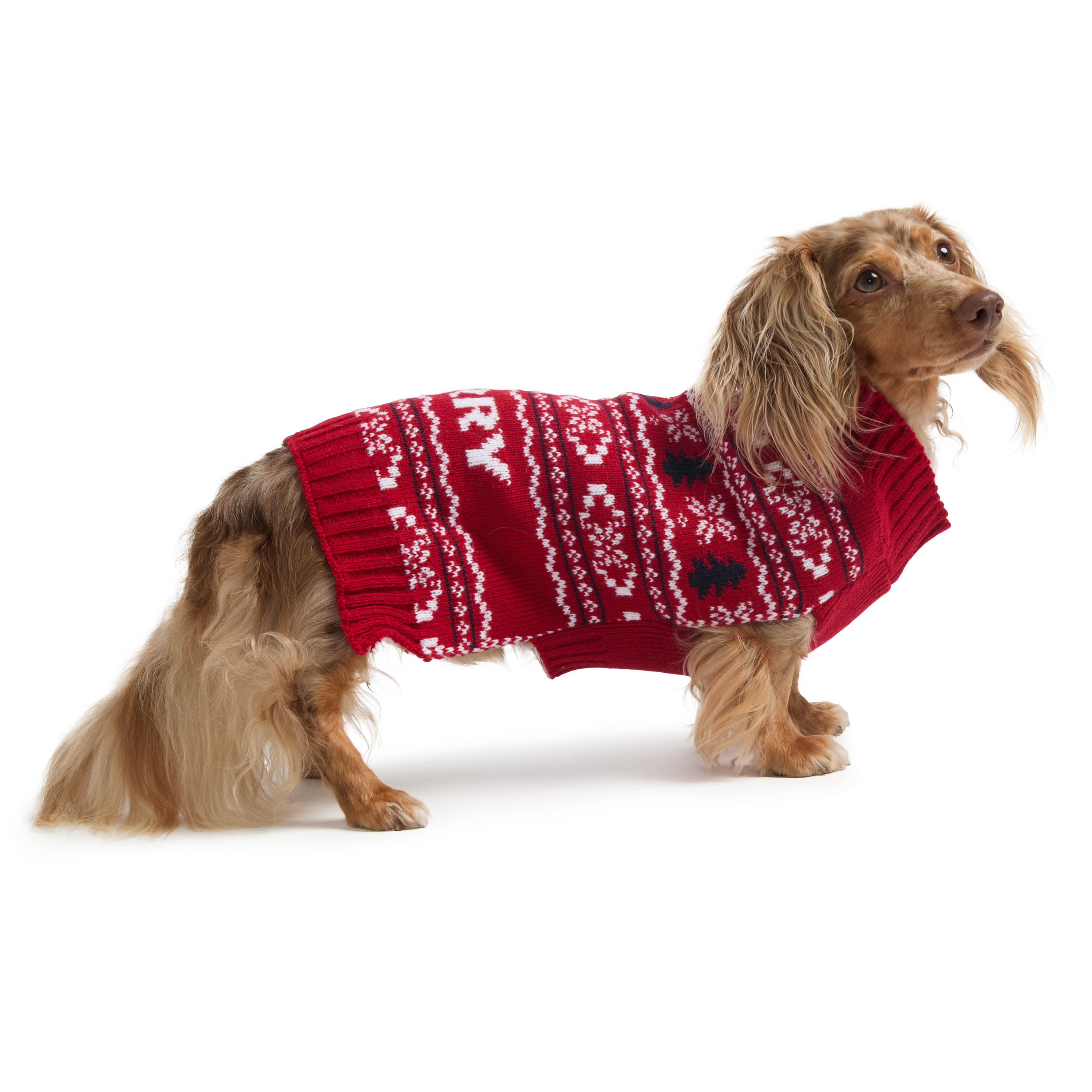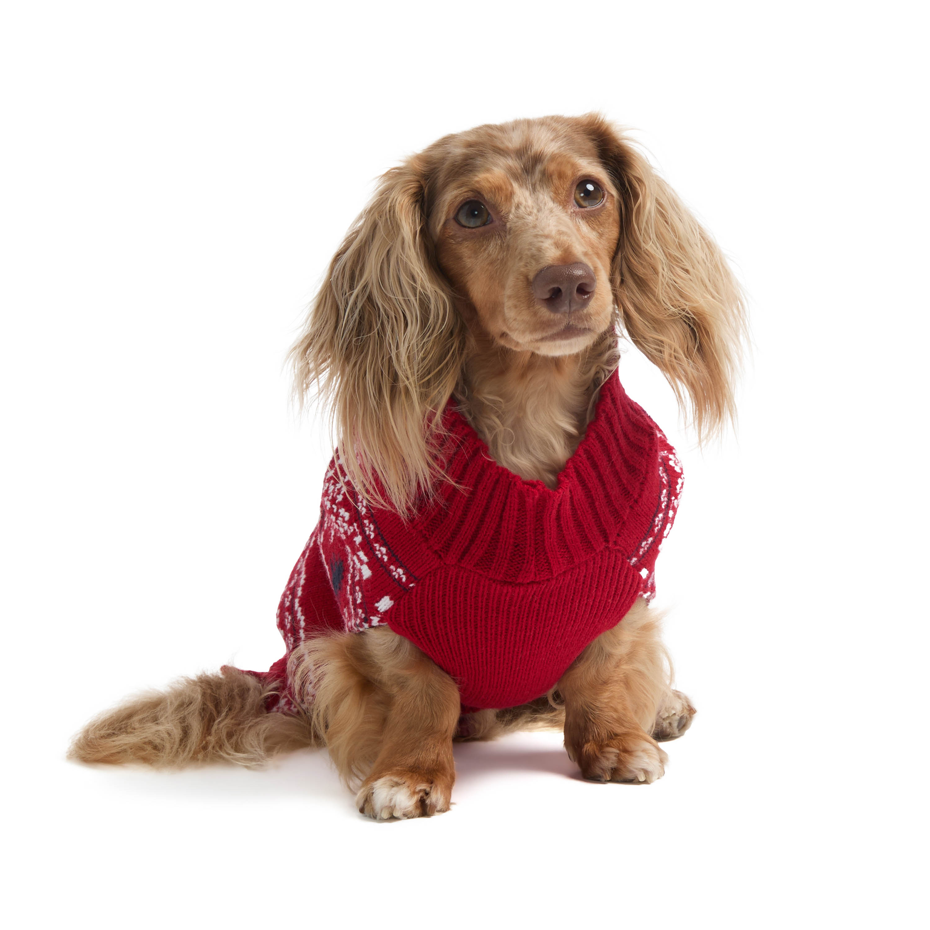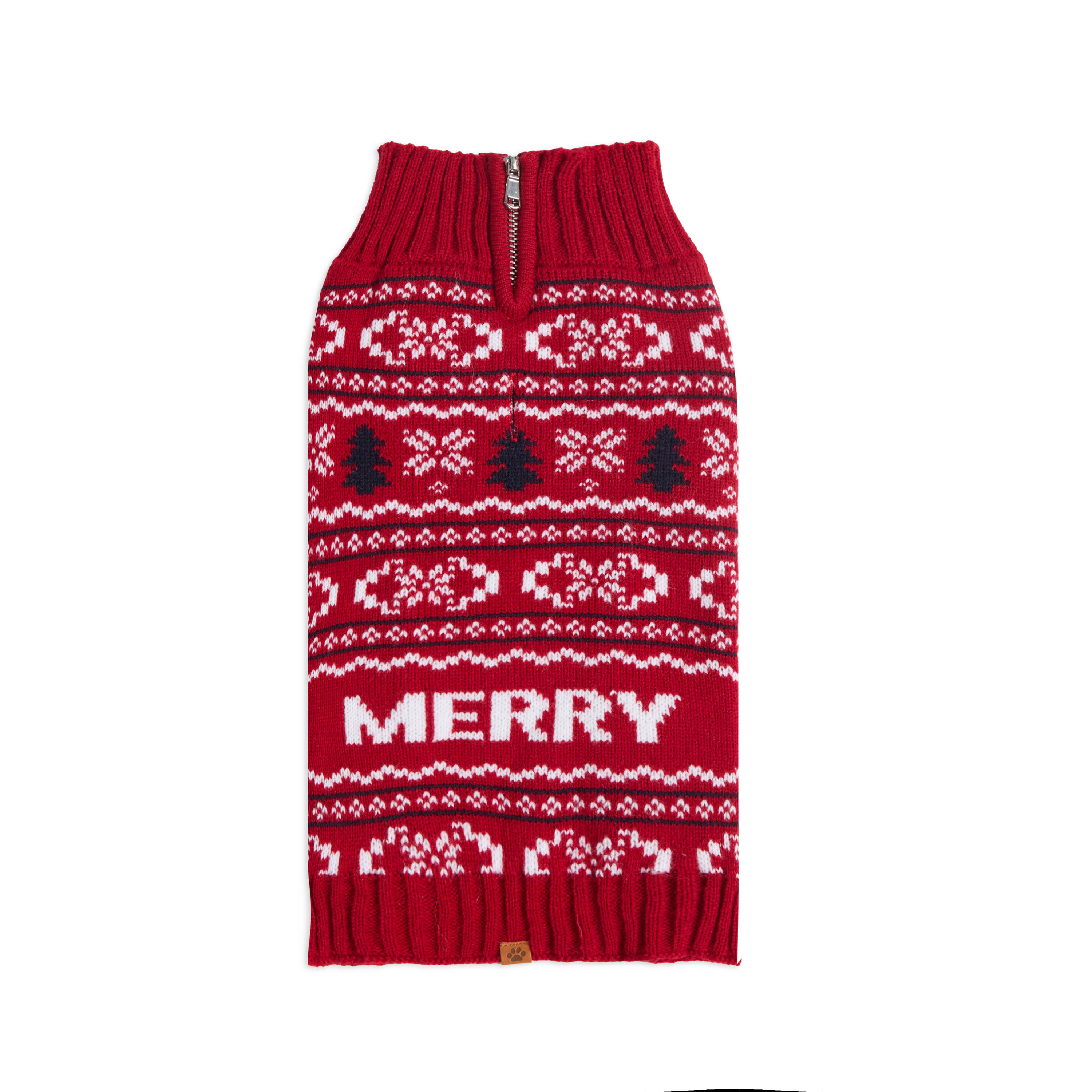 Wrap your pup in holiday cheer with this mock neck knitted dog sweater. Featuring a festive Fairisle jacquard design, it includes a convenient zipper at the neck and slits at the front legs for a perfect fit. Made from soft, cozy fabric, it's the ideal choice for keeping your dog warm and stylish all season long.Specifications