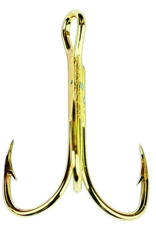 The Eagle Claw 376 Gold Treble Hook is designed for presenting large baits as well as upgrading lures. Perfectly tempered and forged for strength, with a micro-ground point, this premium hook provides the ultimate in hooking and holding strength. A great replacement treble for crankbaits. 2X strong, regular shank, straight point.Specifications