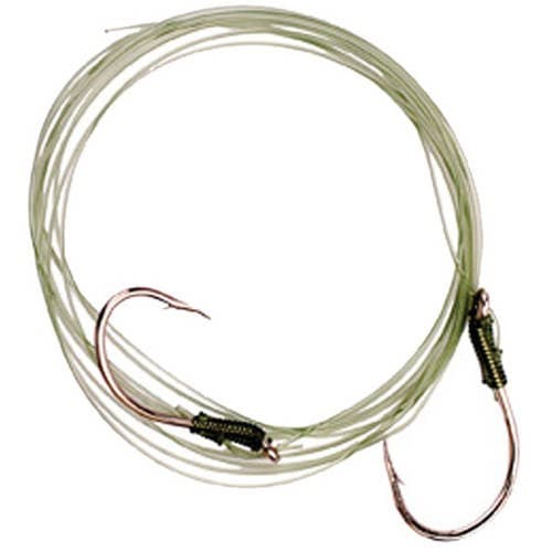 Each hook can be adjusted along the leader.; Lazer Sharp L182 nickel hook; Line: 70 clear monofilament line.; Rig includes two different size hooks for different size baits