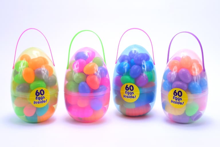 11inch Egg Filled with 60 2.25" Eggs that can be filled with candy or toys for Easter. Food grade plastic means they are safe for your children.Specifications
